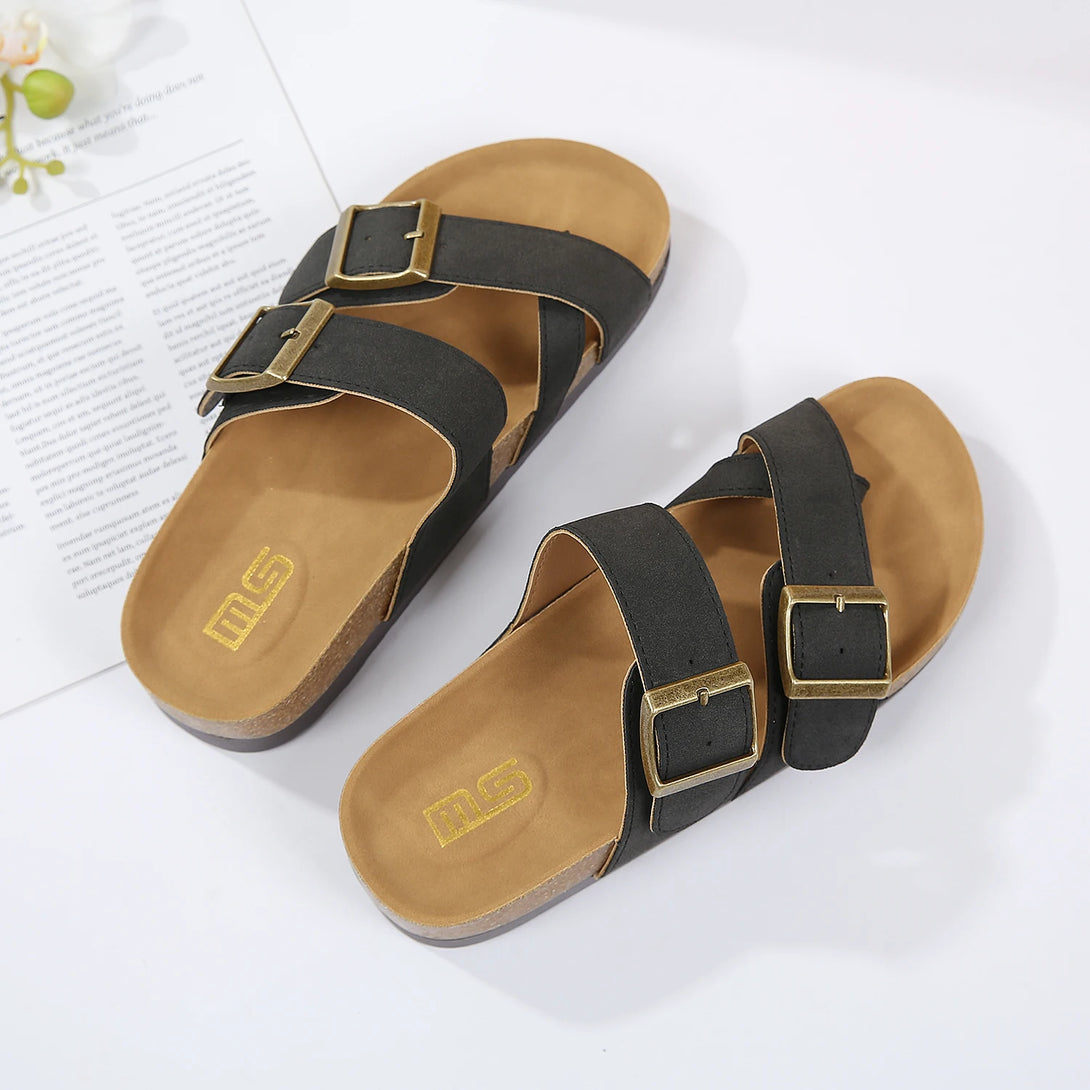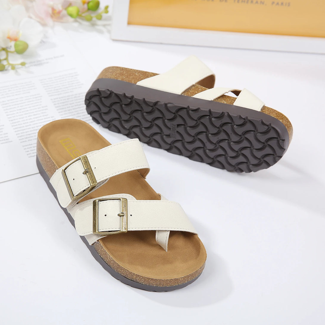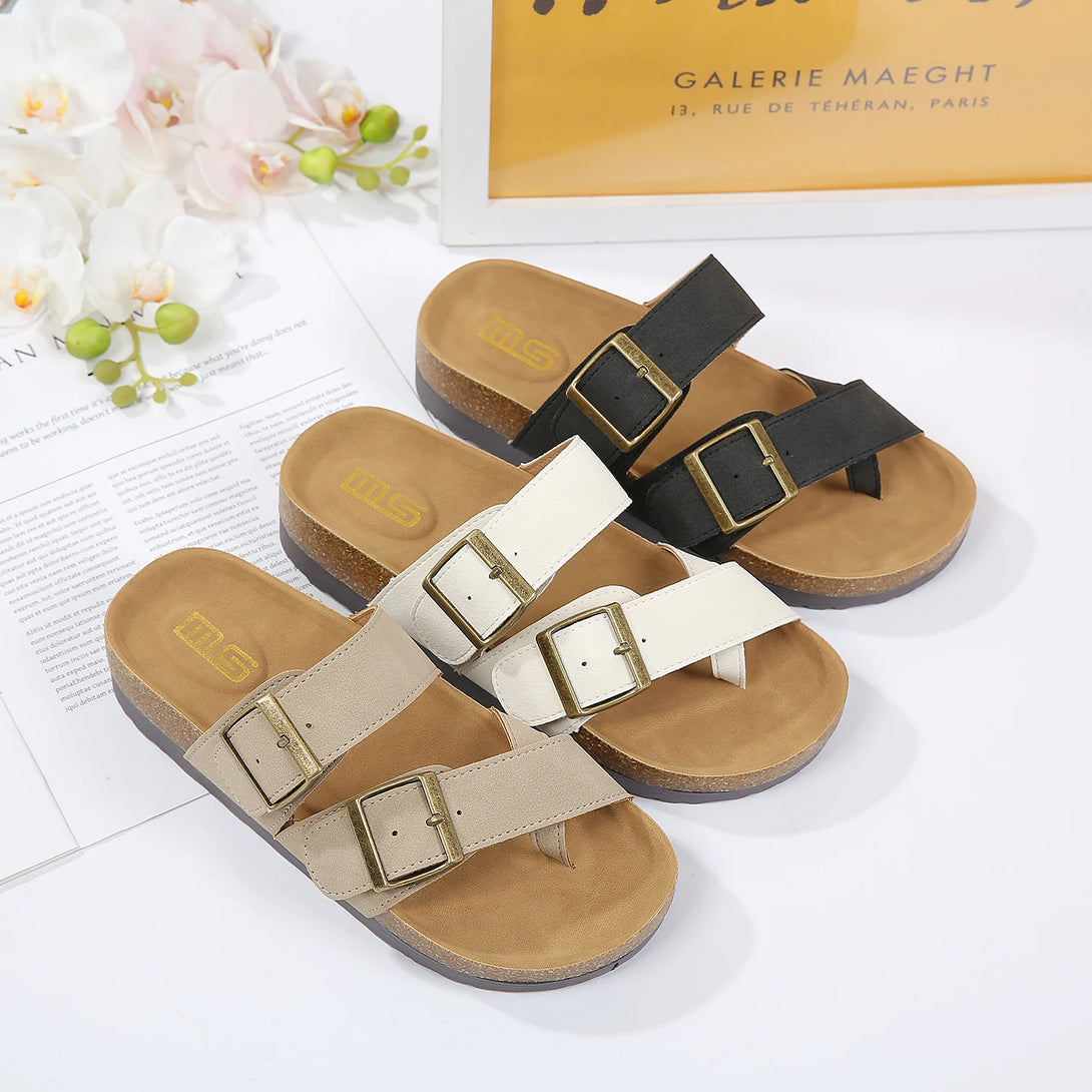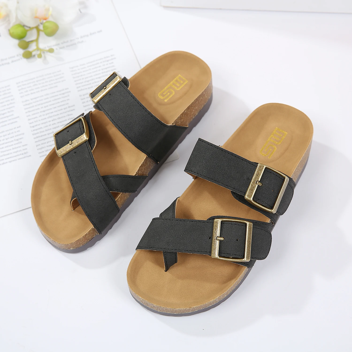 Sandalias con suela gruesa y suave, zapatos planos para mujer, nuevas zapatillas con hebilla en la punta, zapatos casuales de playa.