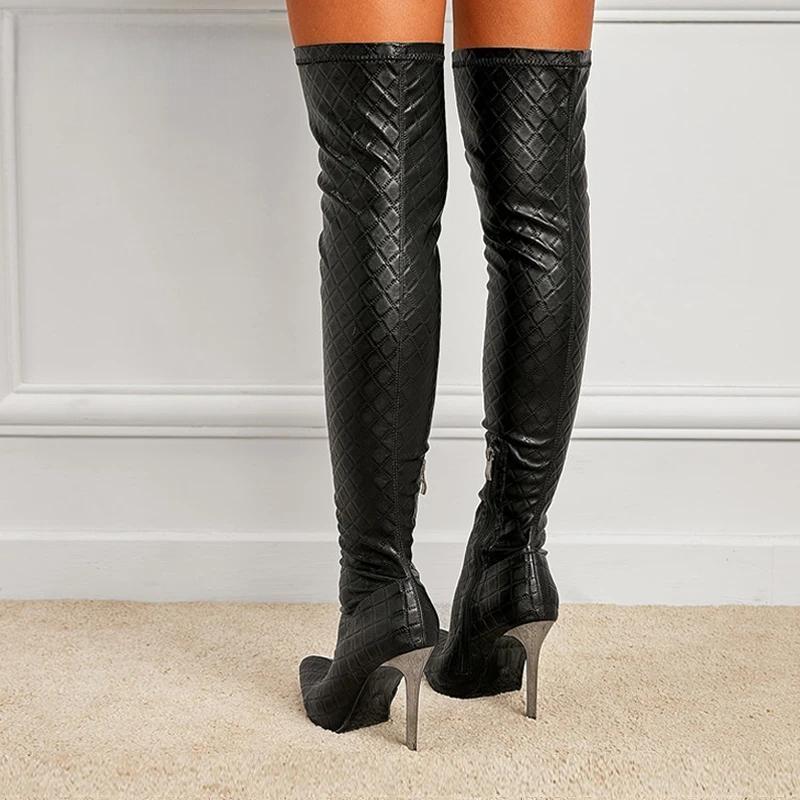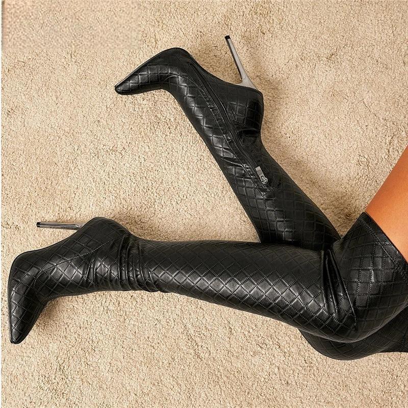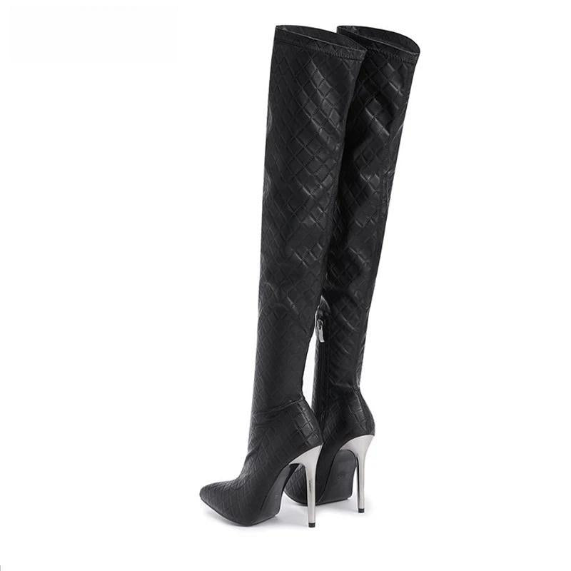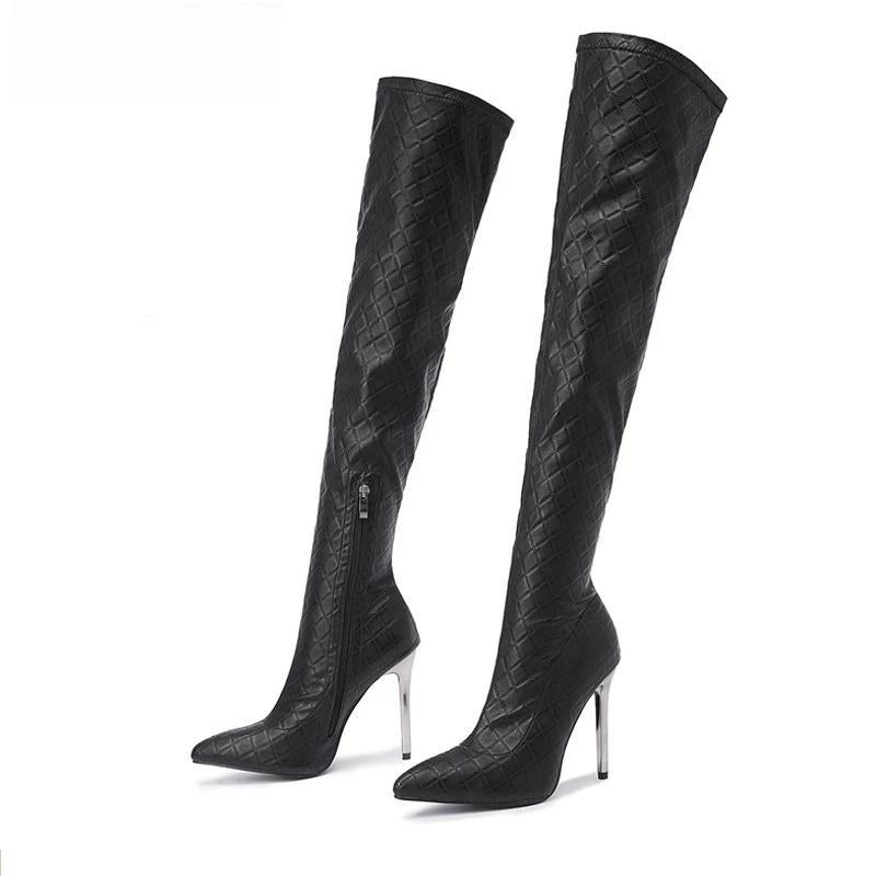 Botas por encima de la rodilla para mujer, zapatos de tacón de aguja, punta puntiaguda, cremallera y tacón alto, sexys, para fiesta en discoteca