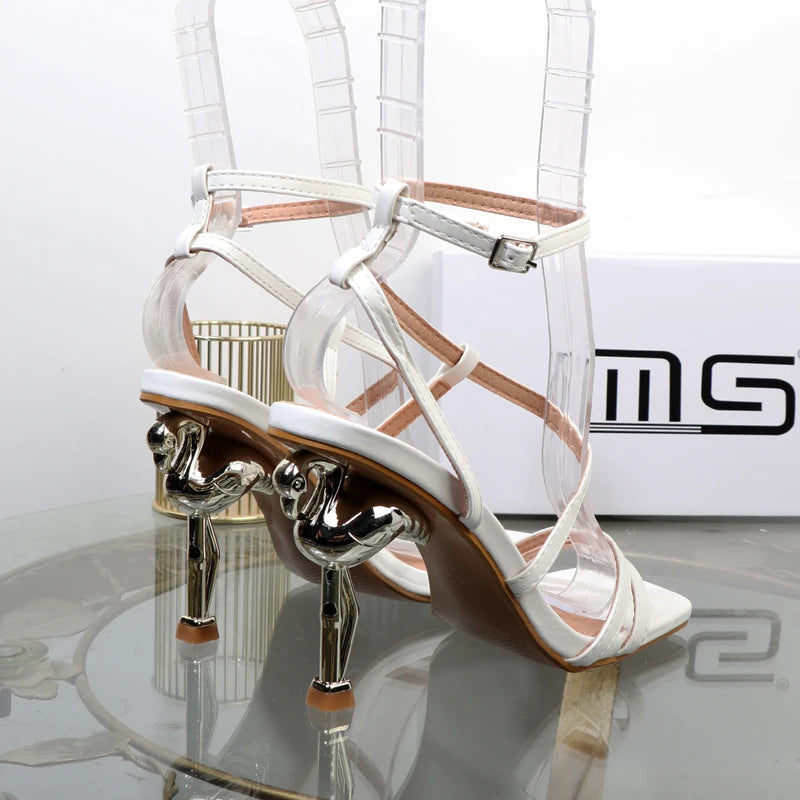 Sandalias sexys, zapatos de tacón alto, sandalias de exterior de estilo extraño de talla grande.