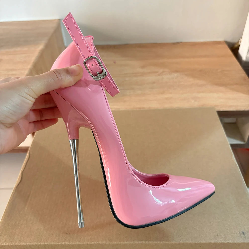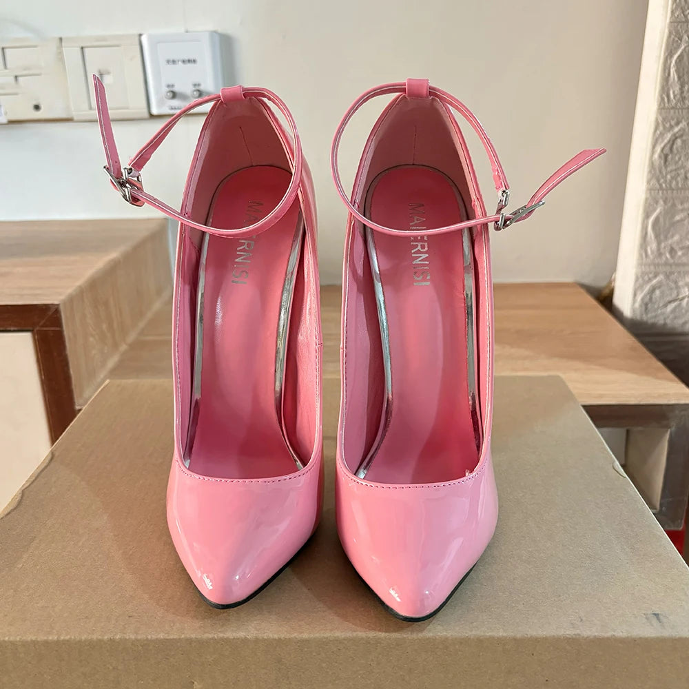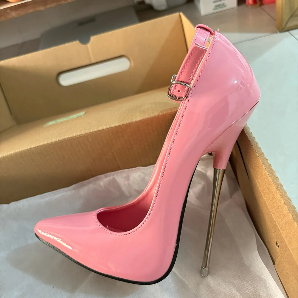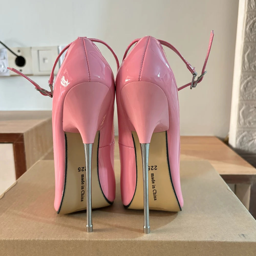 Zapatos de tacón ultraalto rosa brillante para mujer, de 16 cm, con tiras en el tobillo, para fetiches, gays, SM, unisex, para espectáculos Drag Queen, talla grande.