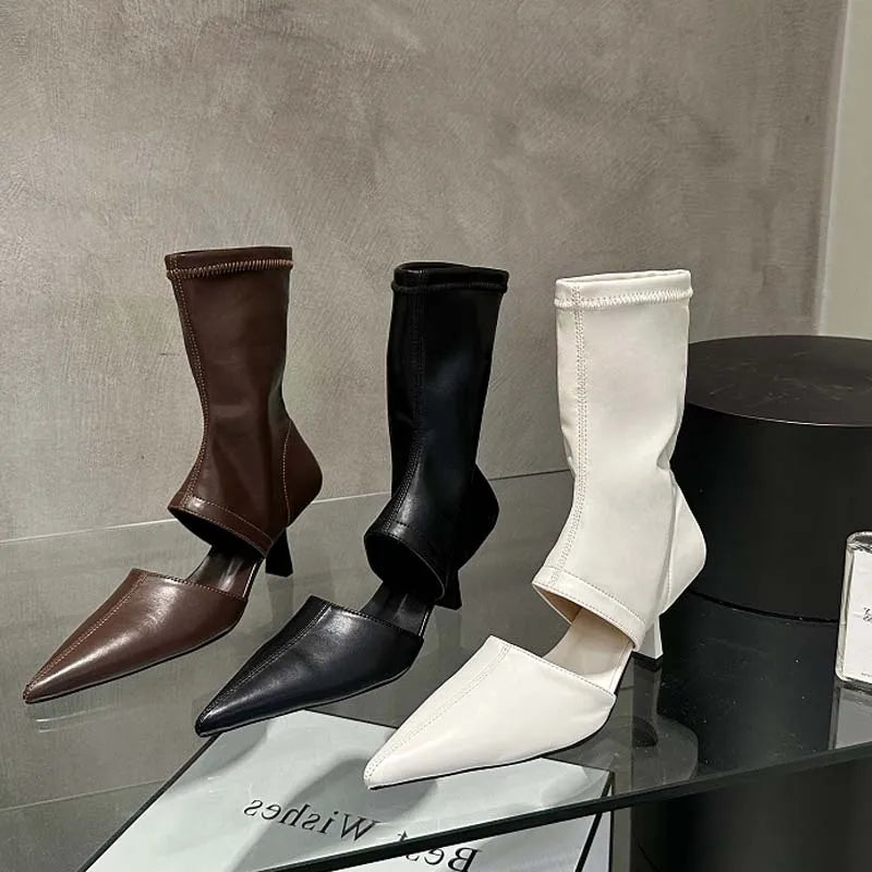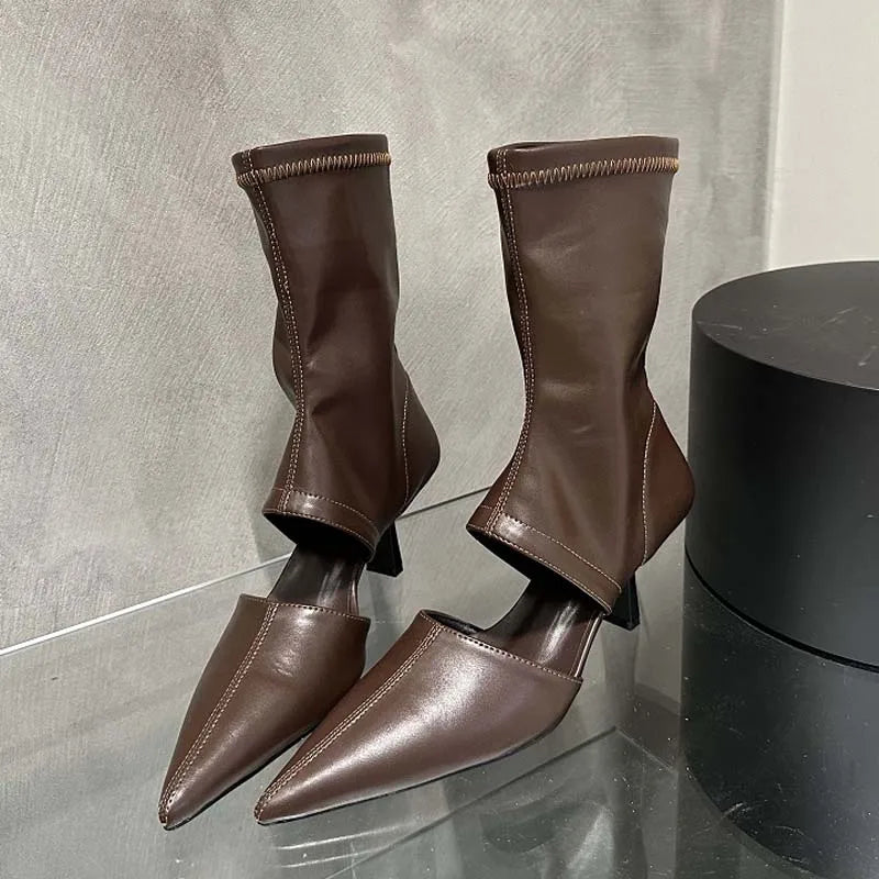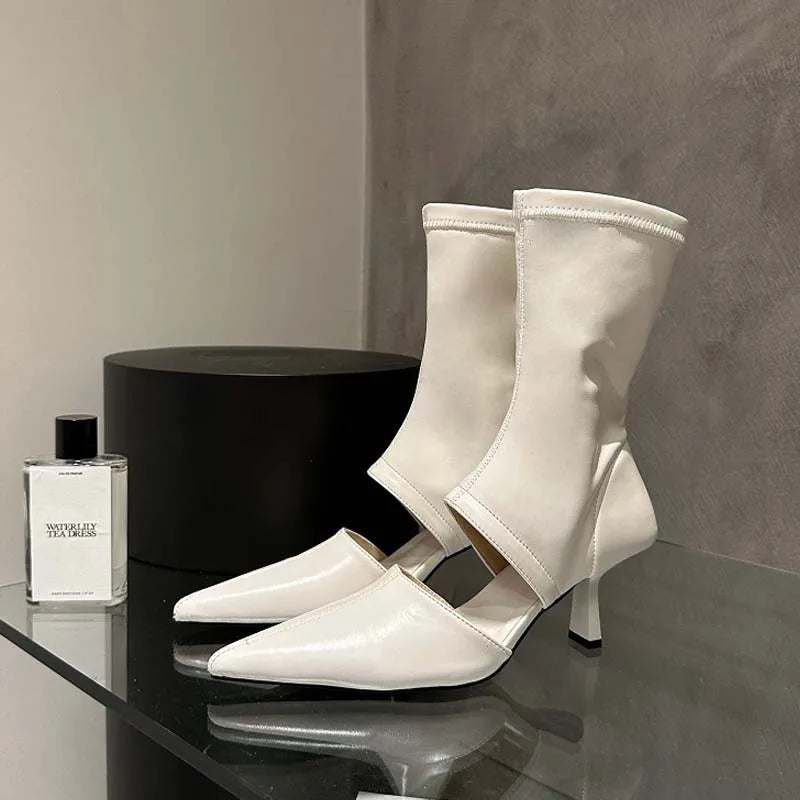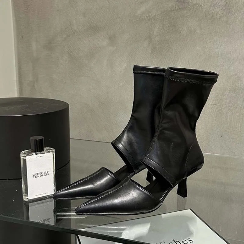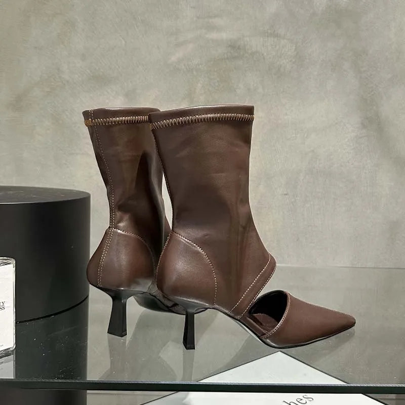 Botines cortos de piel suave para mujer, sandalias con agujeros, punta puntiaguda, tacón bajo y fino, para primavera y otoño