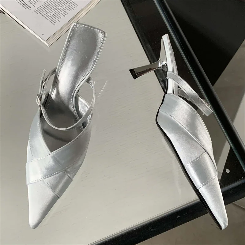 Zapatos de tacón fino con hebilla y punta estrecha para mujer, estilo callejero, a la moda, tipo mula