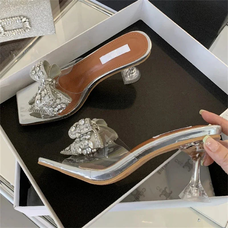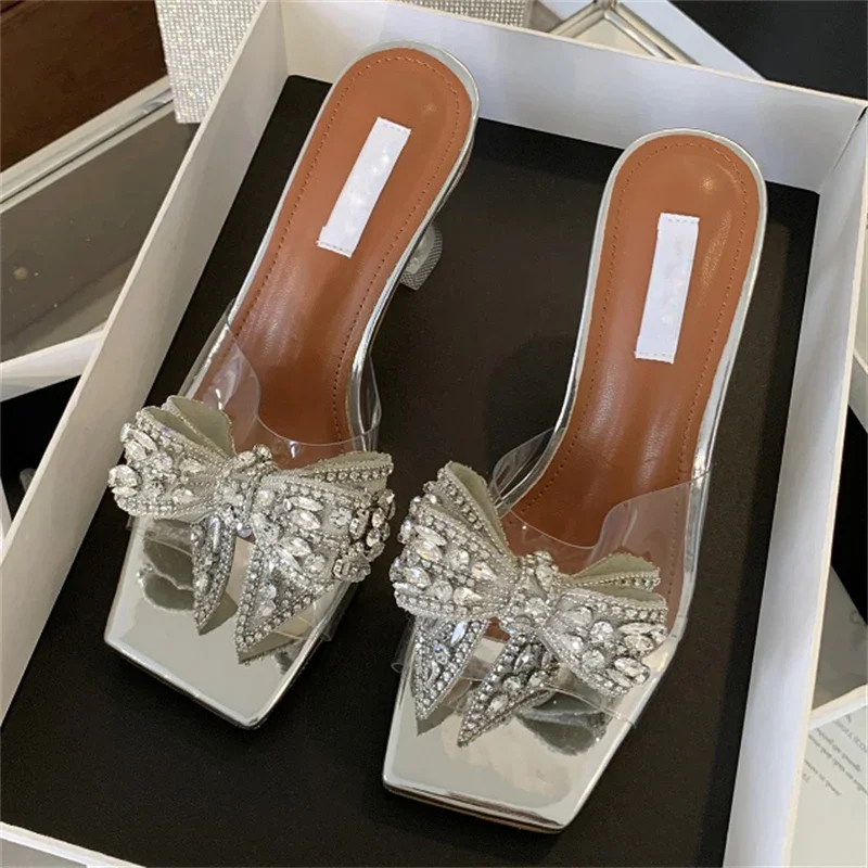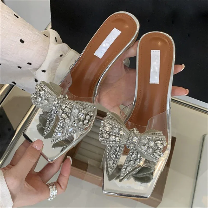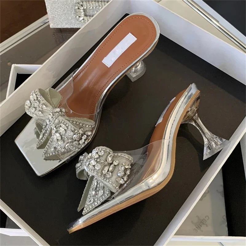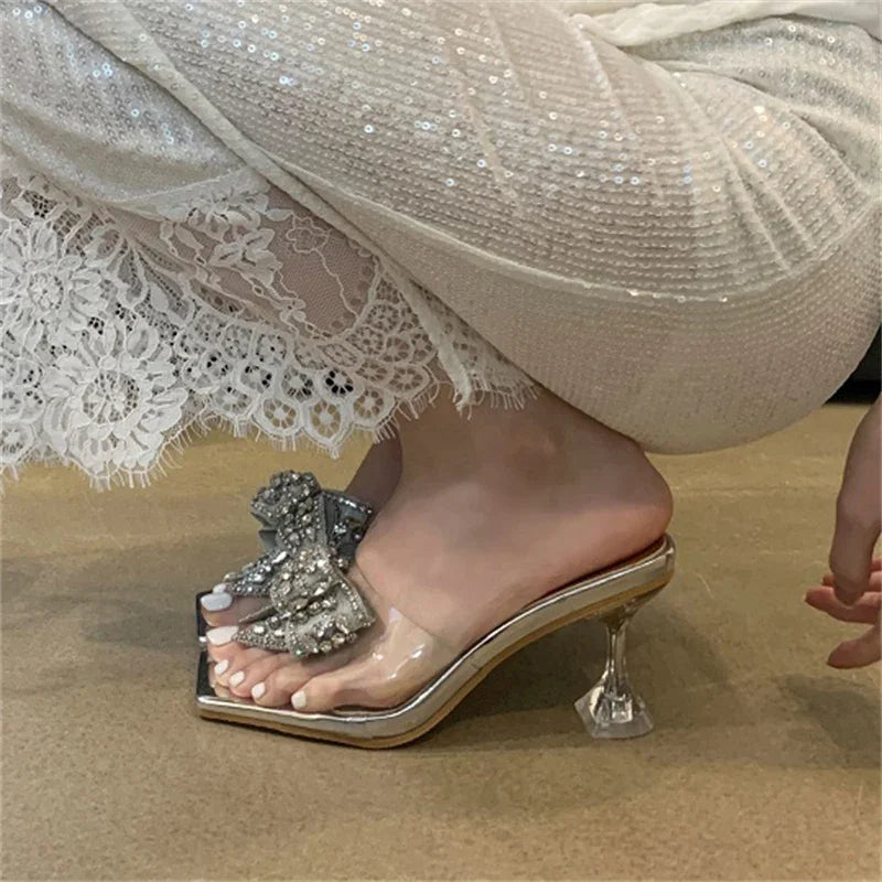 Sandalias de verano para mujer, con cristales de PVC transparente y nudo de mariposa, para banquetes y tacones altos