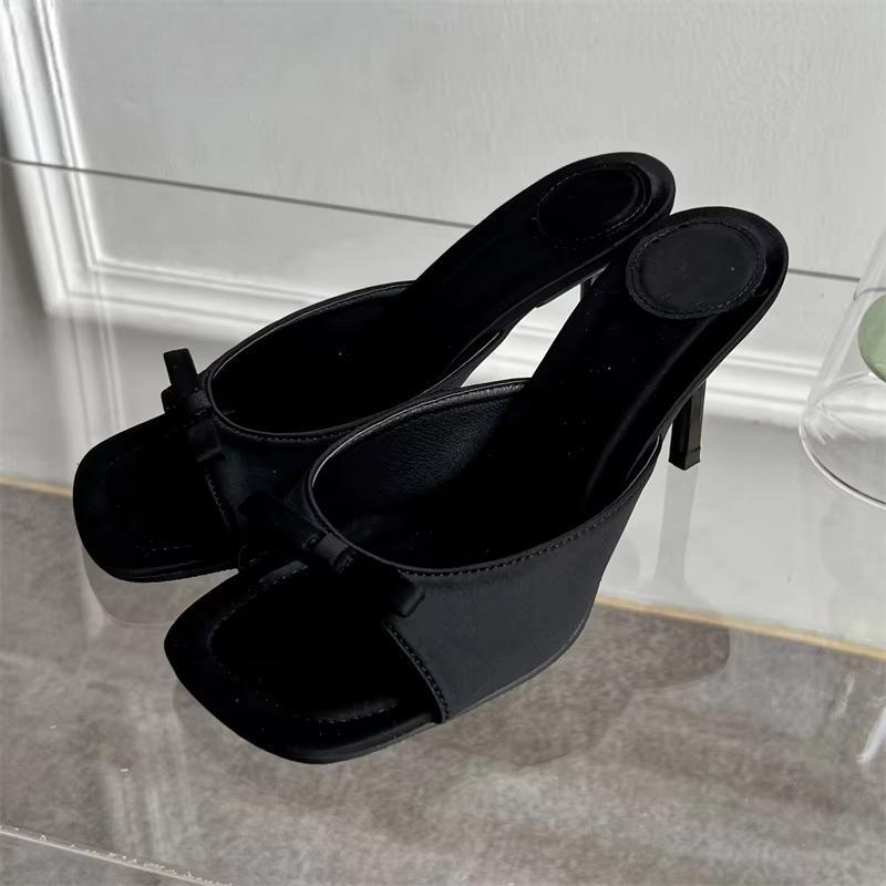 Sandalias de satén con nudo de mariposa para mujer, zapatos de vestir para exteriores, de tacón alto y fino, a la moda de verano