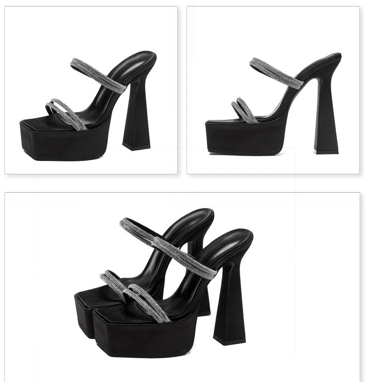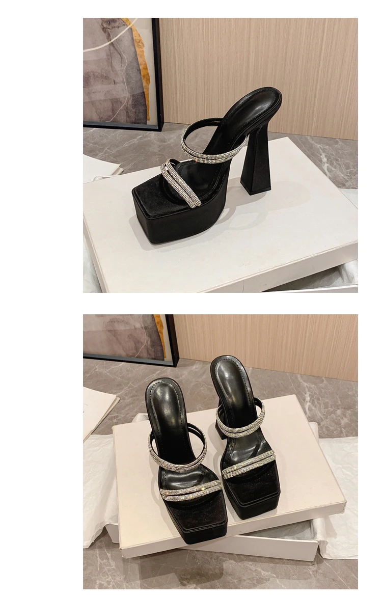 Pantuflas de verano de banda estrecha de seda de cristal para mujer con plataforma extrema y tacones gruesos