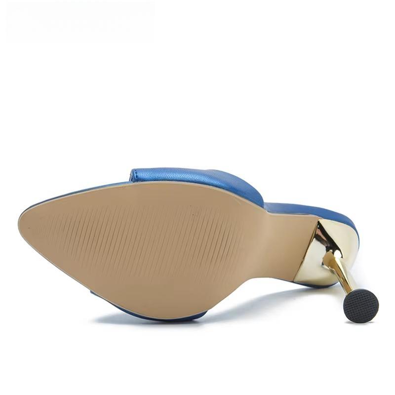 Sandalias de verano con diseño de mulas para mujer, tacones finos, chanclas, punta puntiaguda, zapatos de fiesta