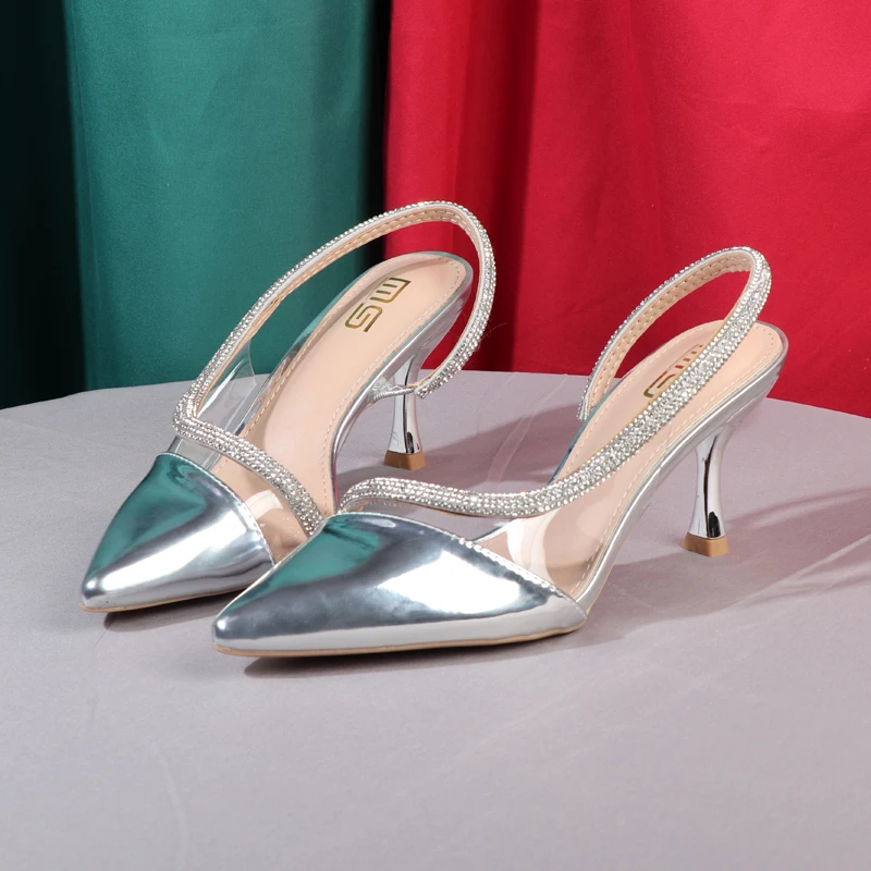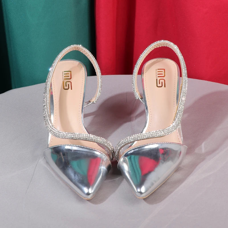 Sandalias puntiagudas de verano con tacones altos de aguja, zapatos de mujer con tiras transparentes y diamantes de imitación, sandalias elegantes para banquetes de moda.