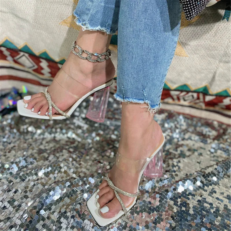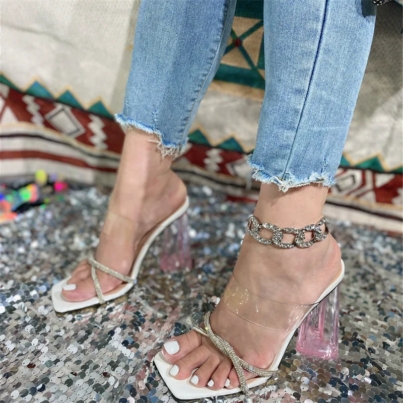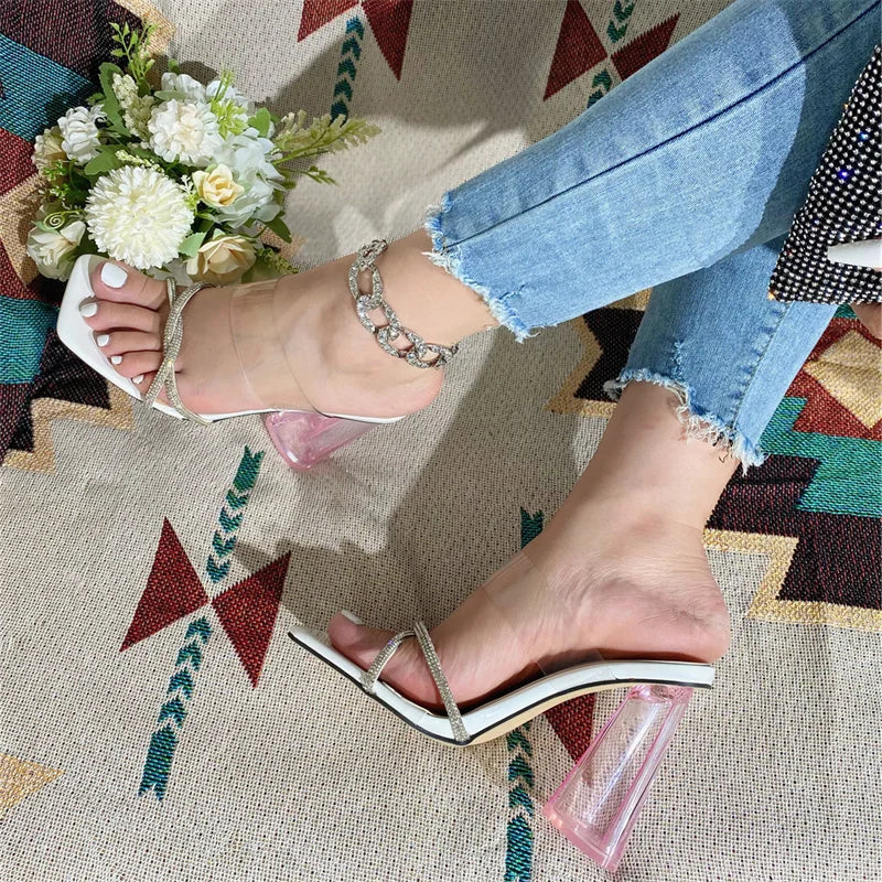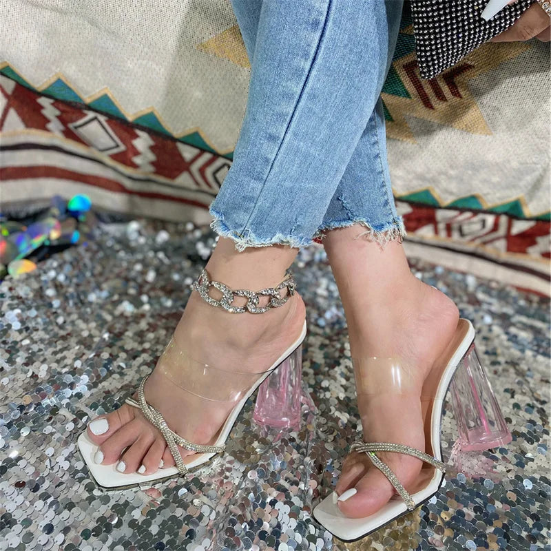 Zapatillas de tacón cuadrado transparentes de PVC con diseño de estilo callejero de verano para mujer, zapatos sexis de punta abierta para fiesta y damas.