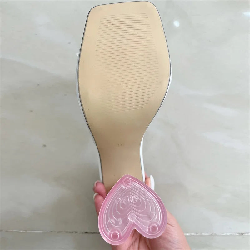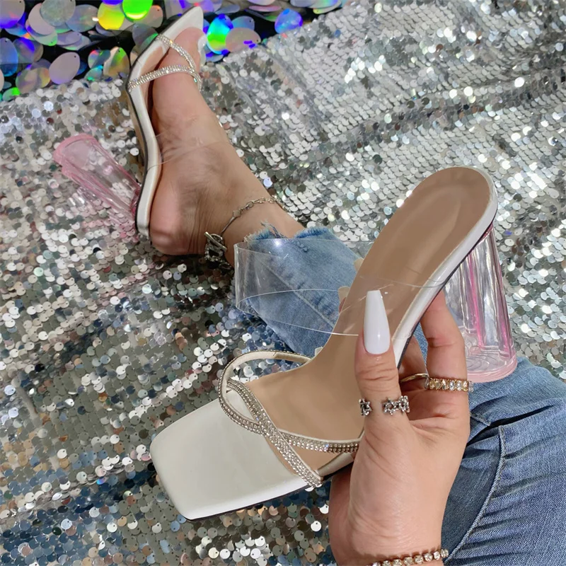 Zapatillas de tacón cuadrado transparente de PVC con diseño de estilo urbano de verano