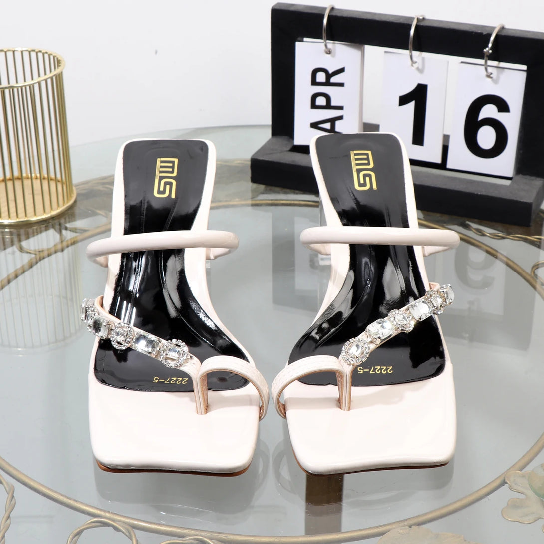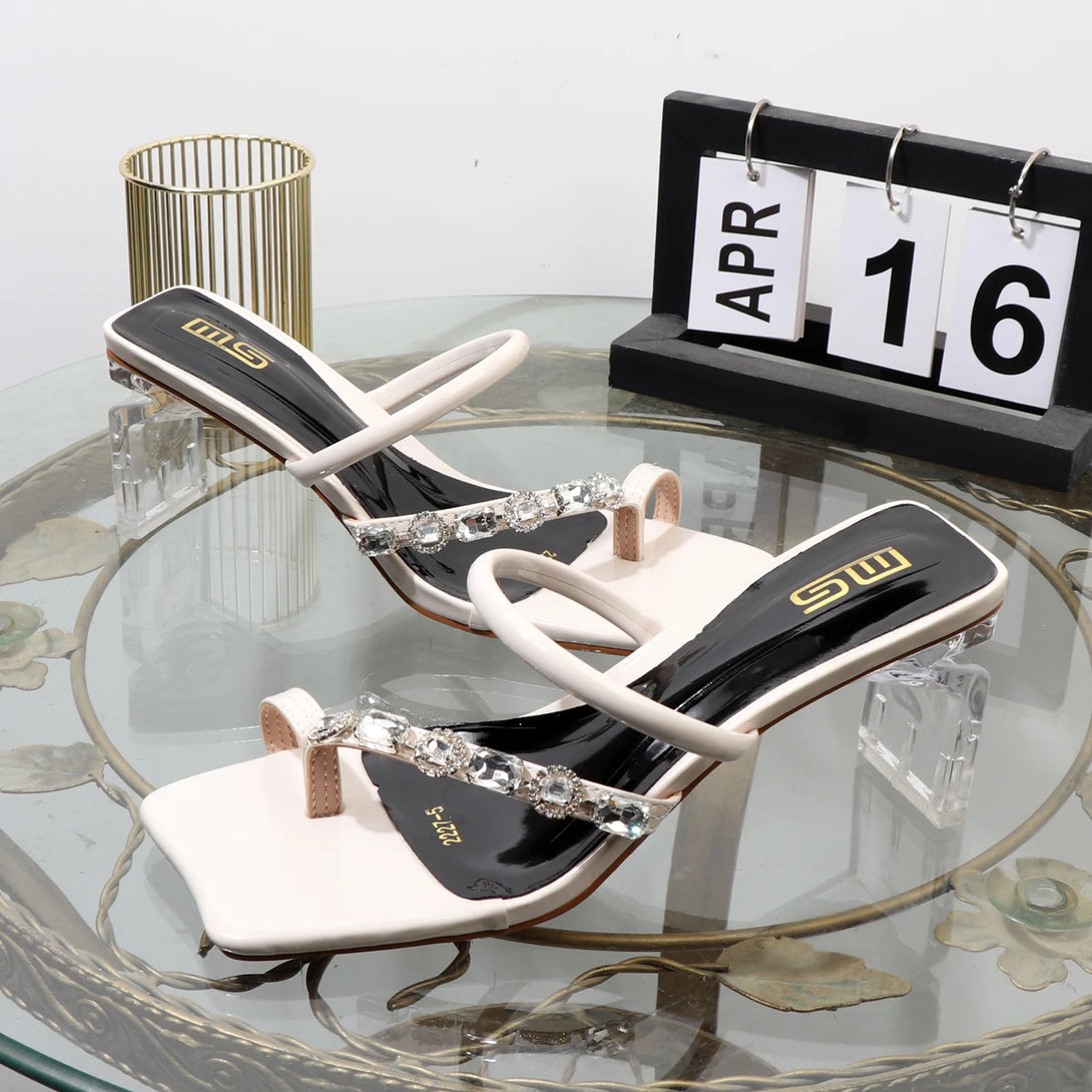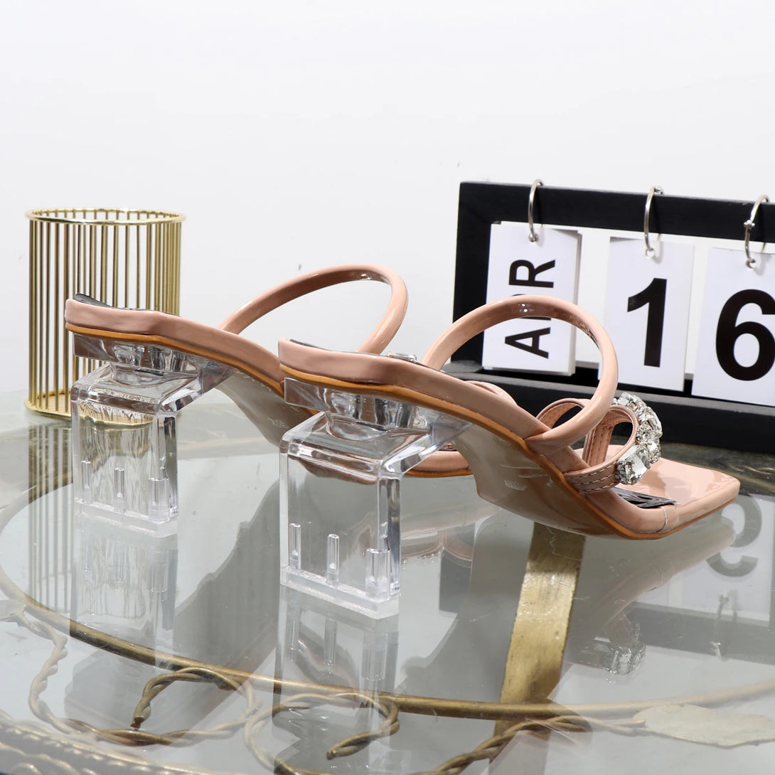 Sandalias de verano con chanclas de diamantes de imitación, ropa de moda de alta gama, sandalias de mujer de tacón grueso para banquetes.