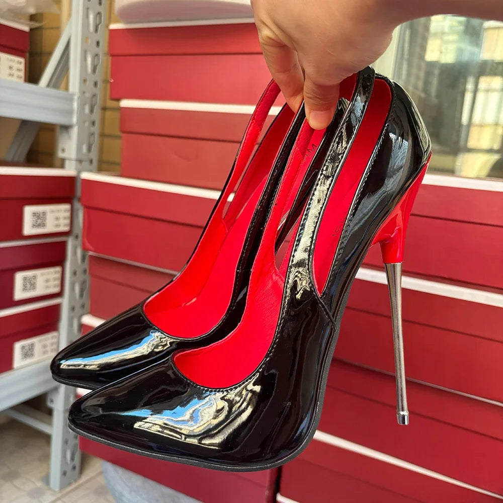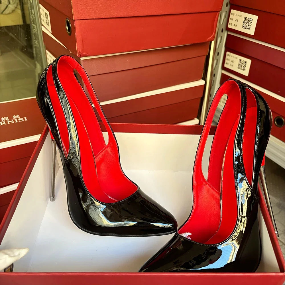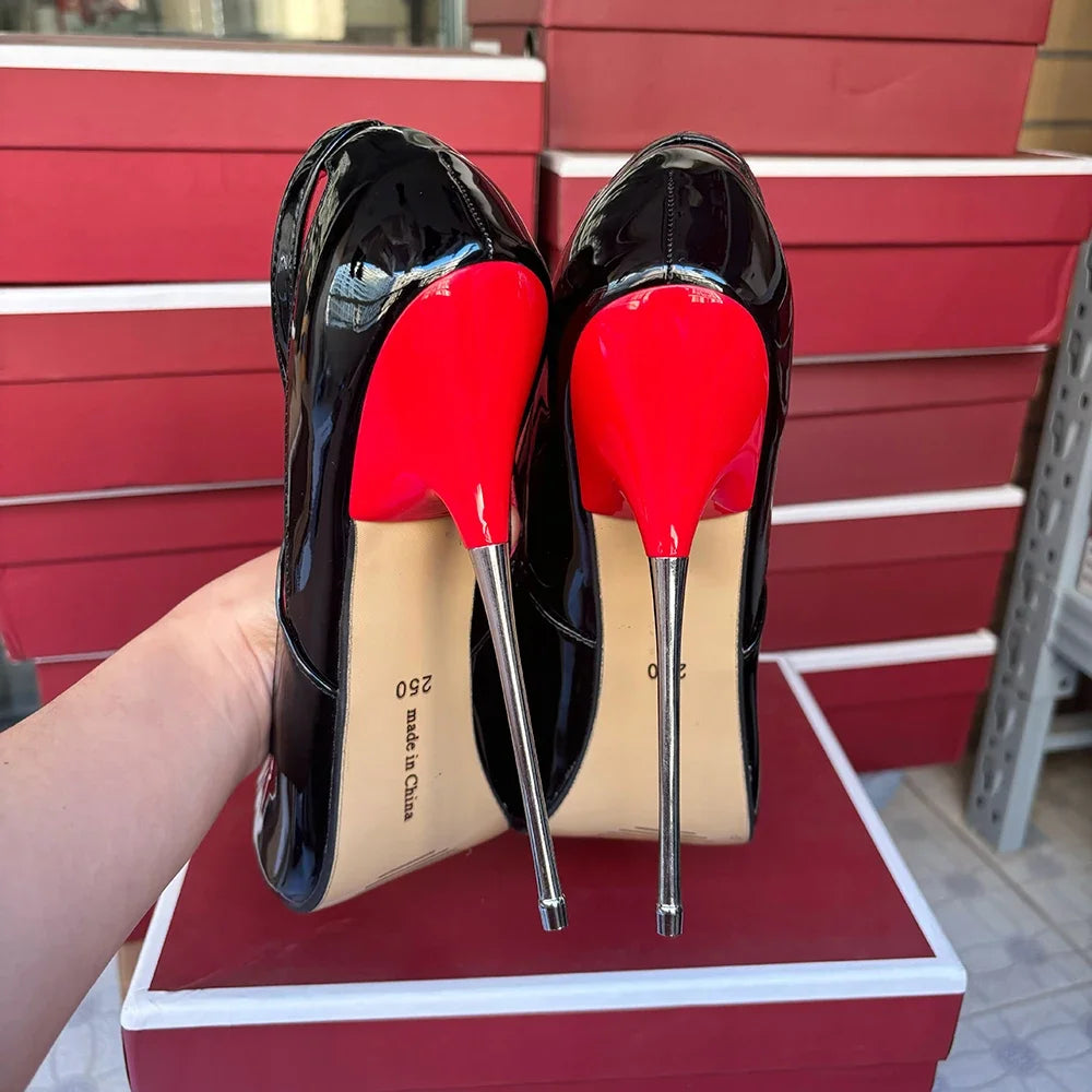 Zapatos de tacón alto y fino de pasarela, sexys, negros y rojos, con interior de aguja, para fetiches, fiestas, clubes, nuevos diseños de moda, 16 cm.