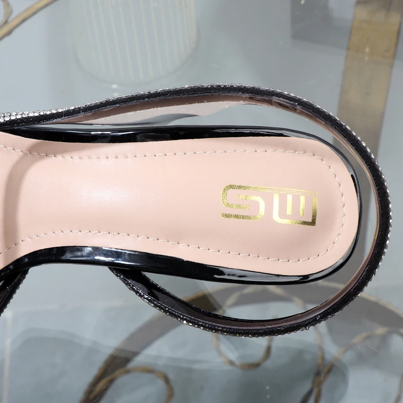Sandalias de verano con tacón alto de aguja y diamantes de imitación para mujer, de talla grande, 10 cm.