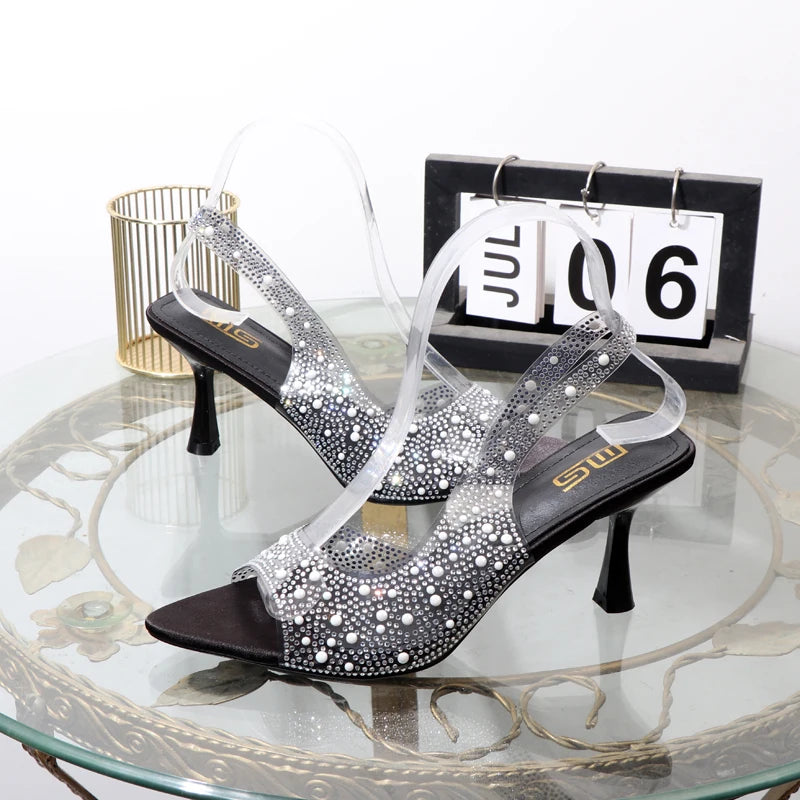 Sandalias transparentes de verano con punta abierta y diamantes de imitación para mujer.