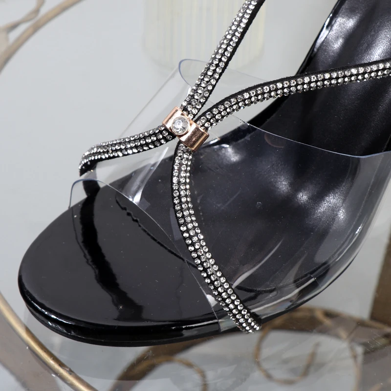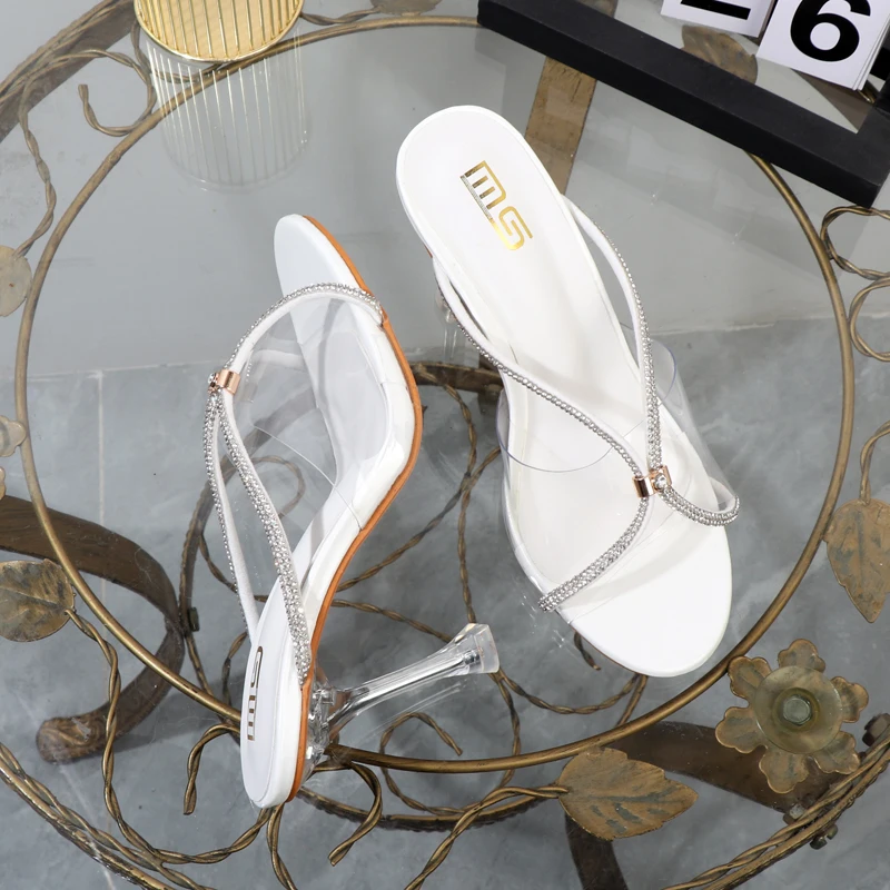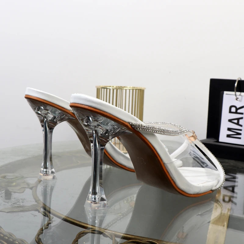 Sandalias de verano transparentes con tacones finos y diamantes de imitación.