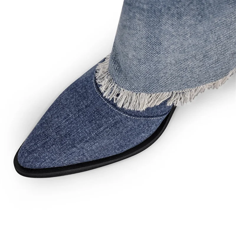 Botines vaqueros de punta puntiaguda para mujer, diseño de jeans, informales, con pliegues, colores combinados, para uso diario, con parches