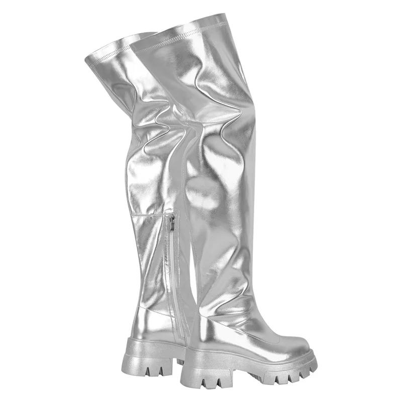 Botas negras elásticas por encima de la rodilla para mujer, botas de invierno hechas a mano a la moda para mujer