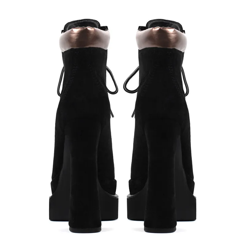 Botines de plataforma doble para mujer con cremallera lateral, a la moda, negros y rojos, con efecto flocado, talla grande.