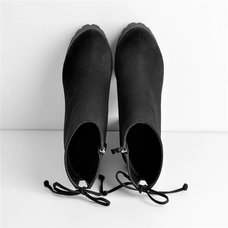 Botines de plataforma para mujer, negros, con cremallera, punta redonda, charol, tacones altos gruesos, botas aterciopeladas de talla grande