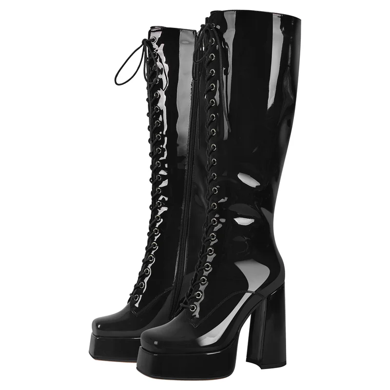 Botas altas hasta la rodilla con plataforma, punta cuadrada y cremallera lateral para mujer