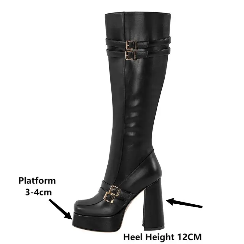 Botas altas hasta la rodilla con plataforma, punta cuadrada y cremallera lateral para mujer