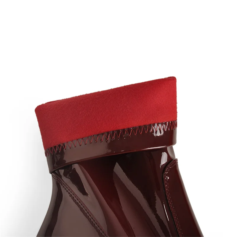 Botines de charol con punta puntiaguda para mujer, tacón alto de metal transparente, interior aterciopelado, talla grande