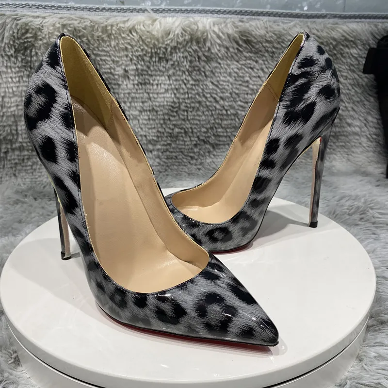 12cm Grey leopard high heels women's narrow pointed high heels, 10cm , suitable for professional clothing,Spring and autumn wea