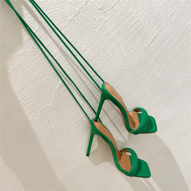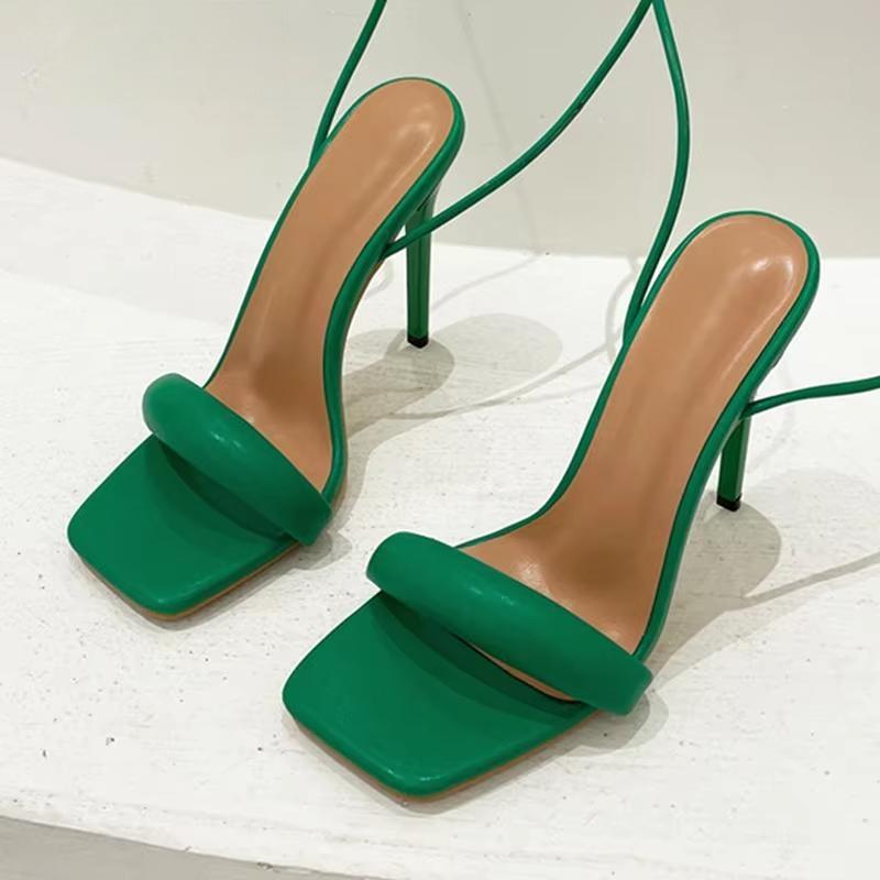 Ankle Strap Green Women's High Heels Sandals Square Toe Female Party Shoes Sandalias De Mujer