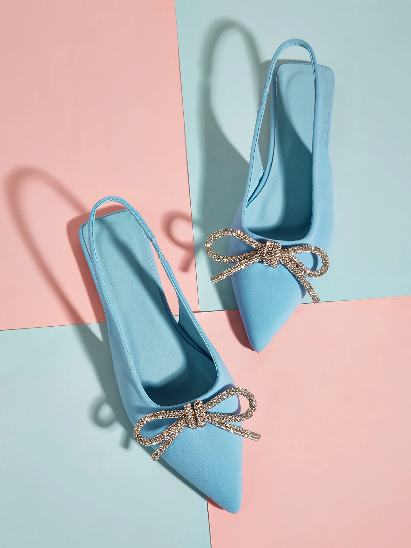 Autumn CRYSTAL Butterfly-knot Green Women Pumps Shallow Pointed Toe Stripper