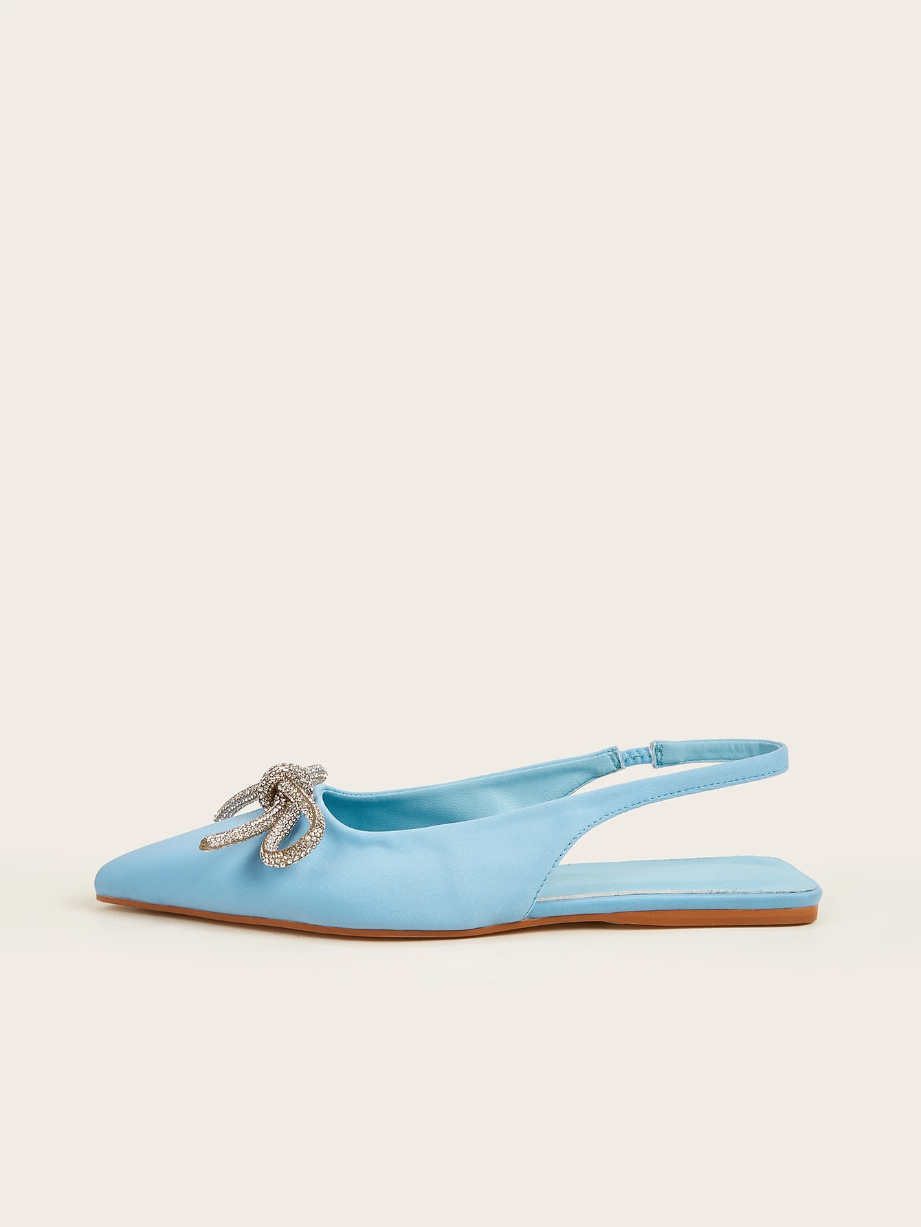 Autumn CRYSTAL Butterfly-knot Green Women Pumps Shallow Pointed Toe Stripper Flat heels Mules Ladies Sandals shoes