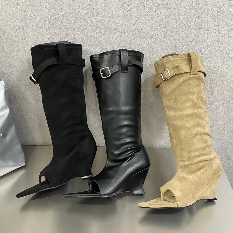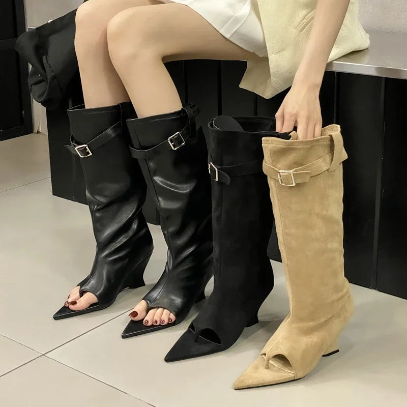 Autumn Fashion Pointed Clip Toe Knee-High Women Boots Sandals