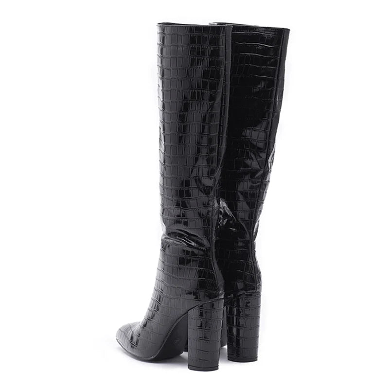 Autumn Winter Chunky Heels Black Blue Knee High Boots