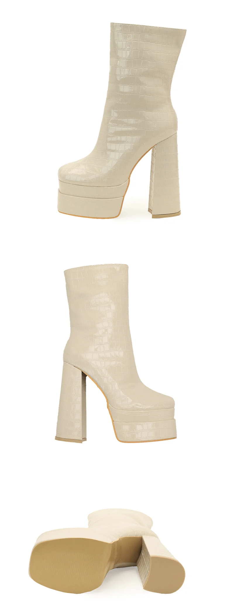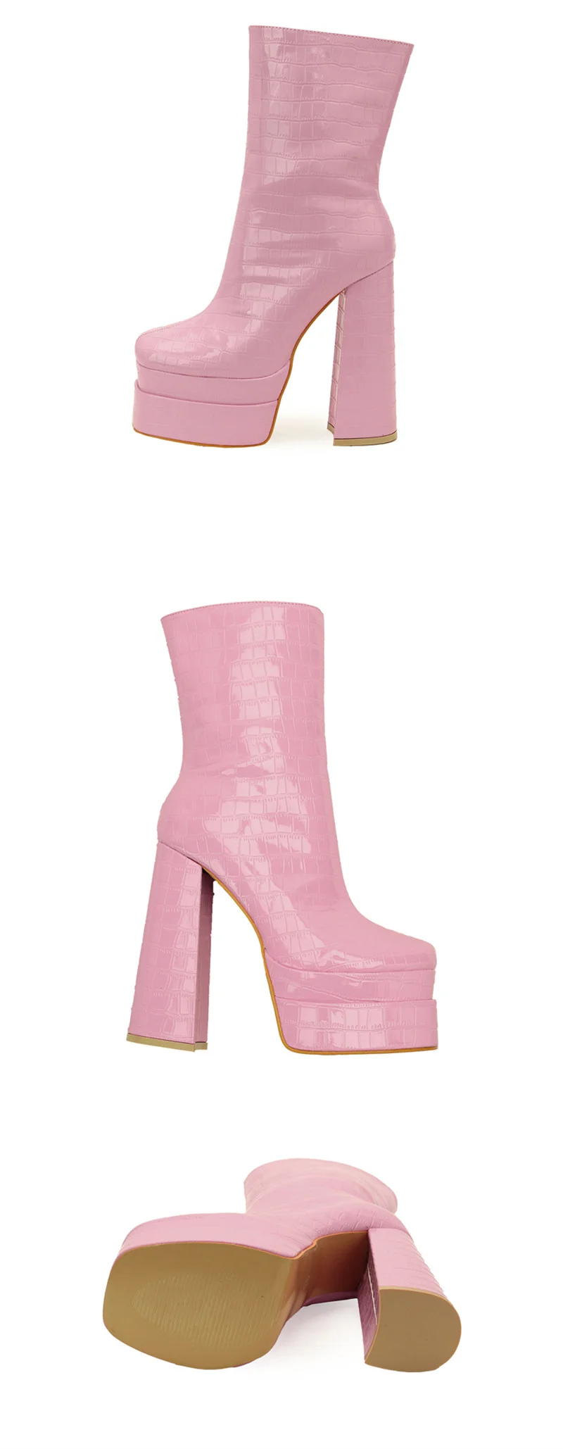 Autumn Winter Sexy Pink Snake Print Leather Women's Ankle Boots Solid Thick Bottom Ladies High Heels Platform Zip Shoes