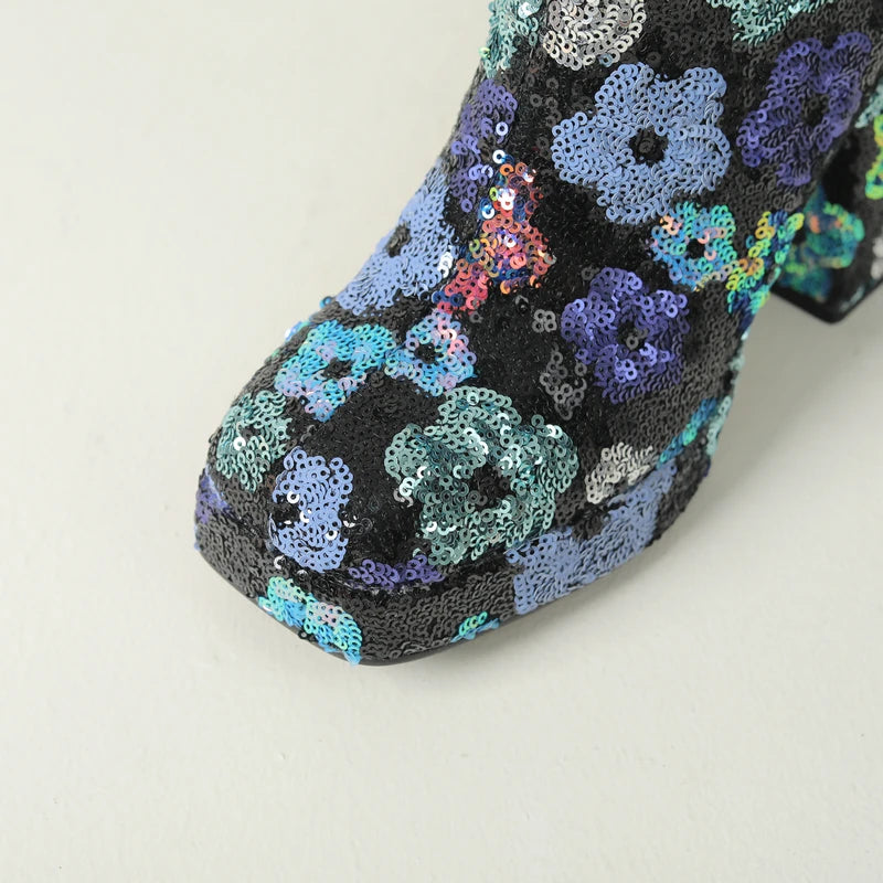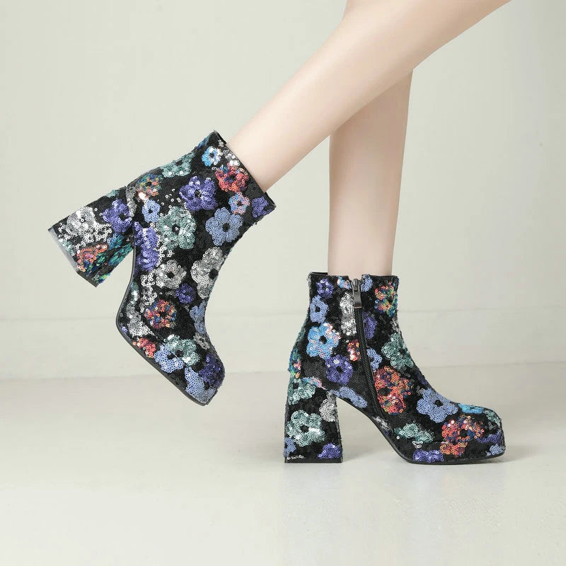 Autumn Winter Women Ankle Boots Platform Thick High Heel Ladies Short Boots PU Leather Square Toe Side Zipper Dress Boots