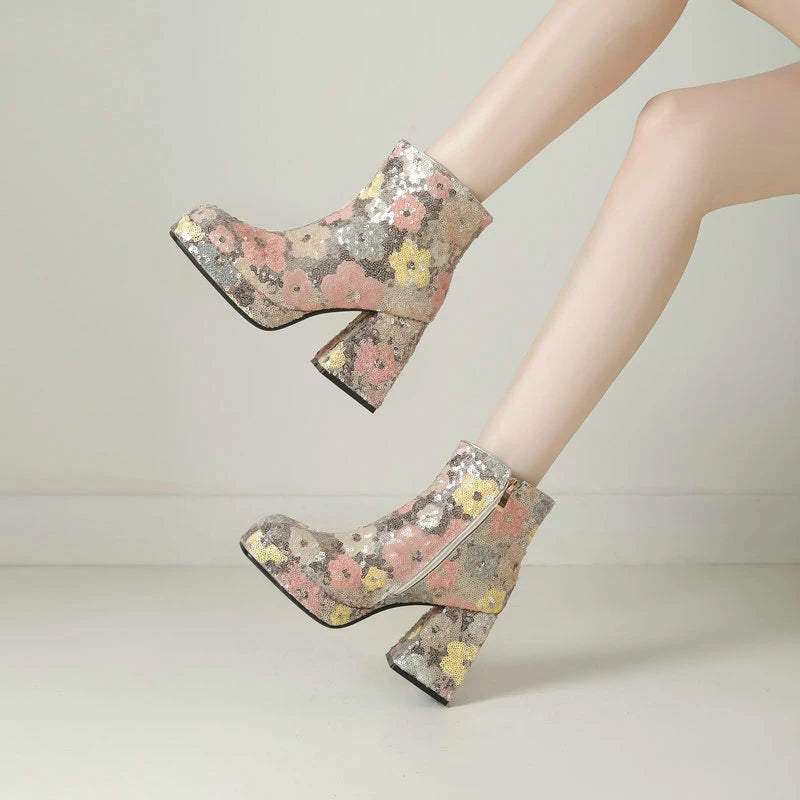 Autumn Winter Women Ankle Boots Platform Thick High Heel Ladies Short Boots