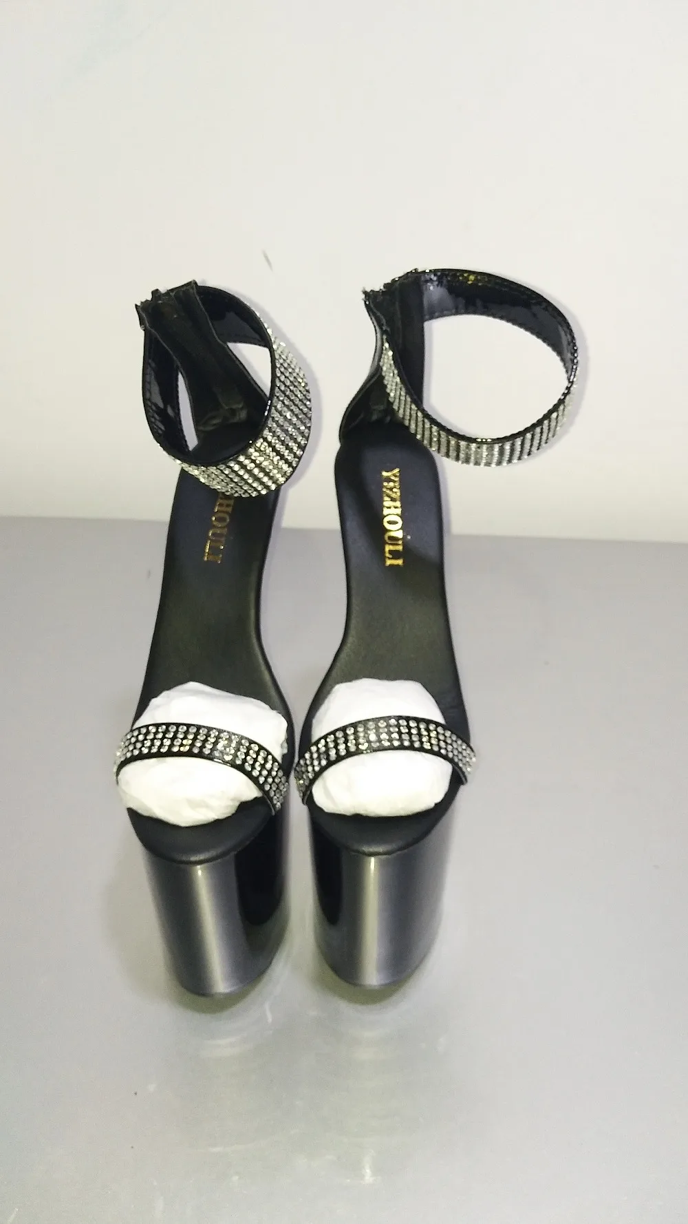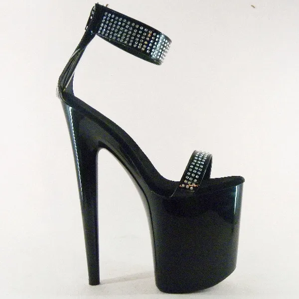 Black Sexy Shoes 8 inch Rhinestone Stiletto Heels 20cm Open-Toed High-Heeled Sandals Platform ankle Dance Shoes
