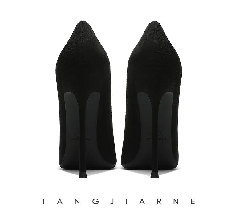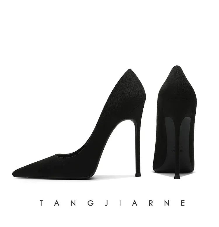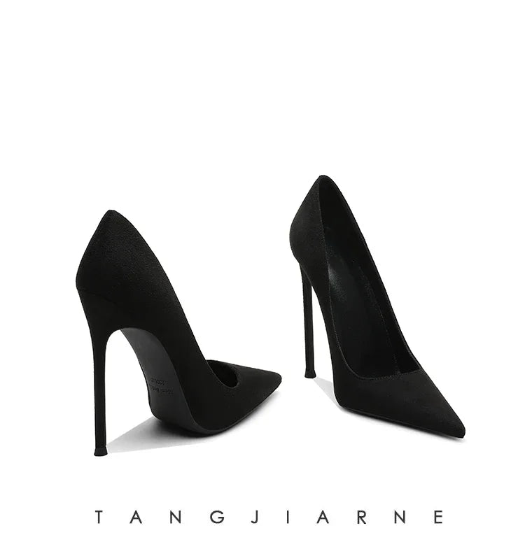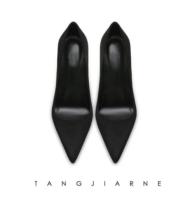 Black suede high heels women's slim heels