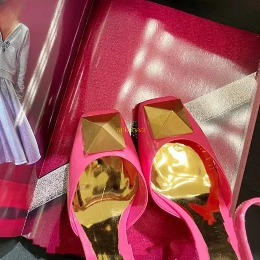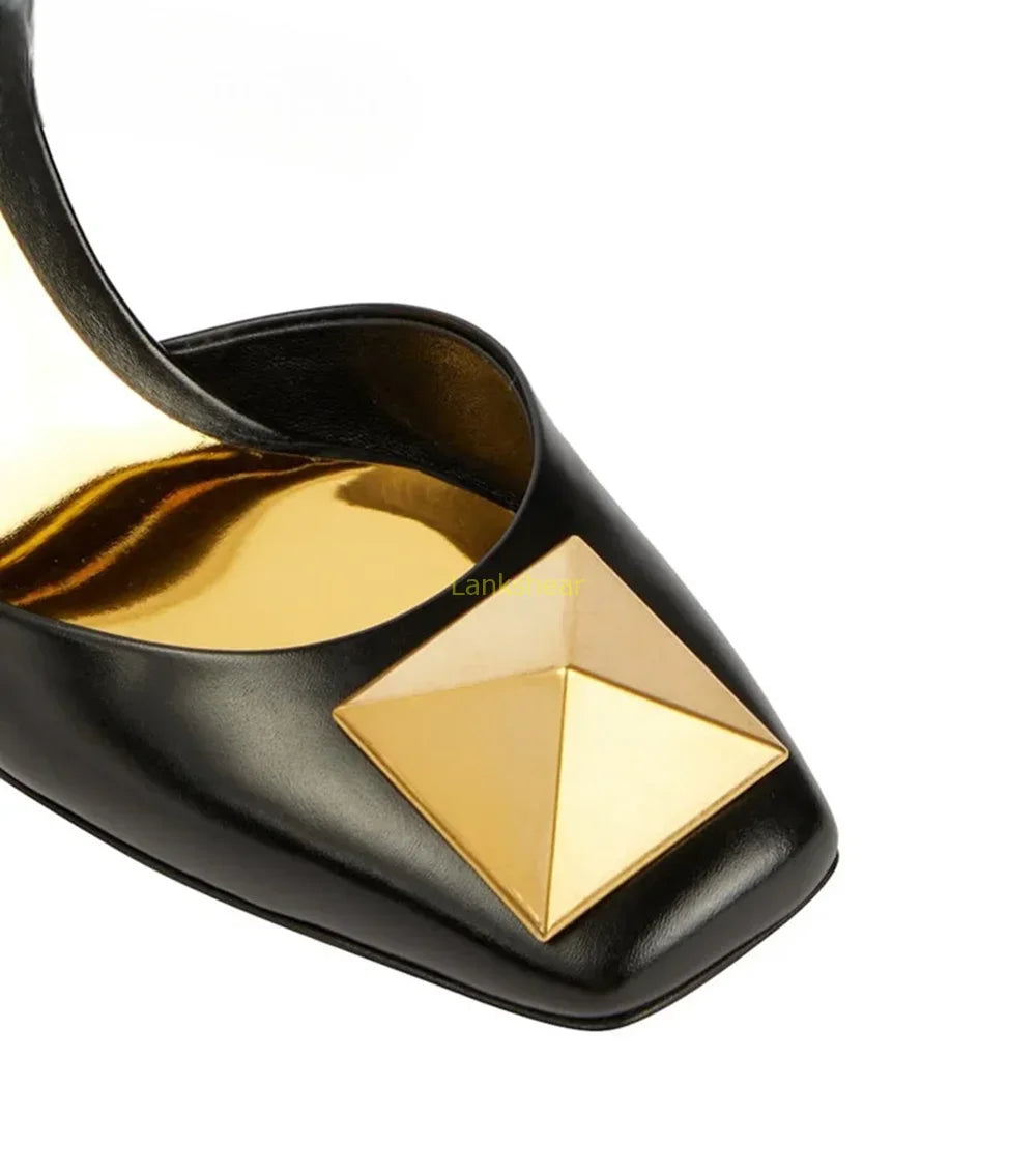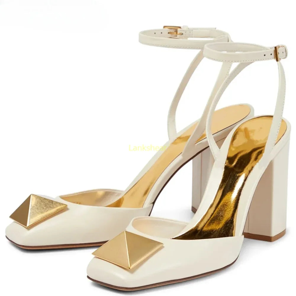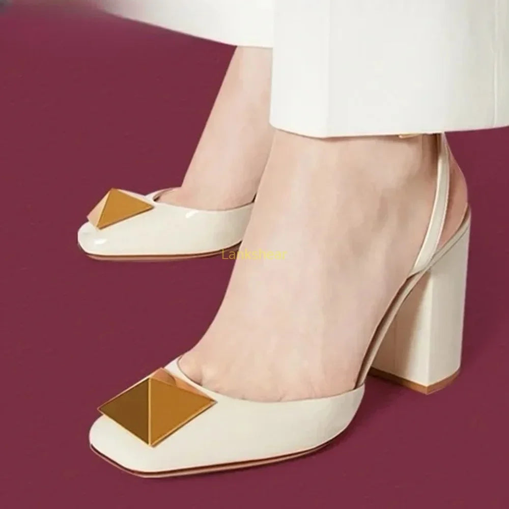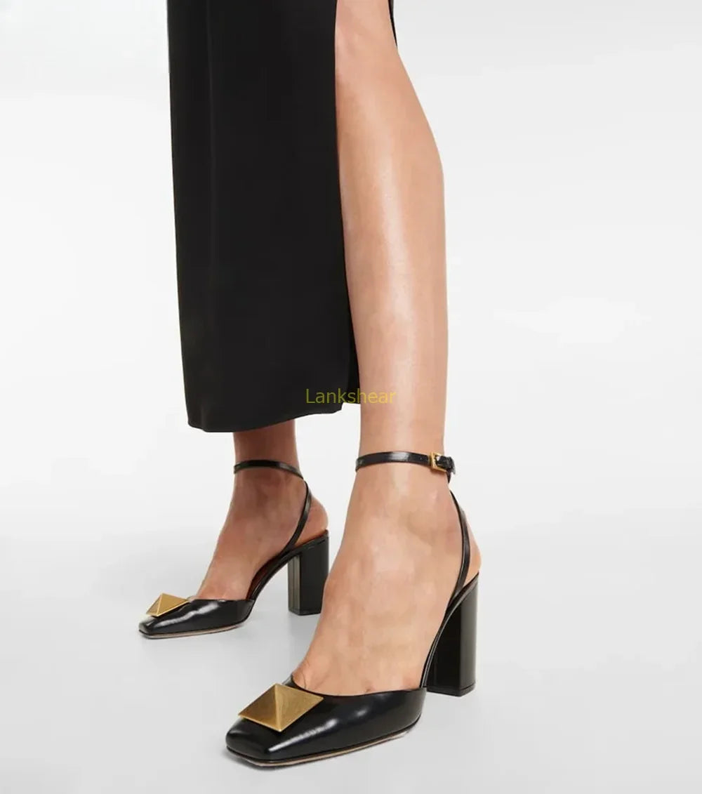 Rivet Metal Square Button Pumps Sexy Square Toe Thick Heel Slingback Buckle Strap New Arrivals Fashion Women Modern Shoes