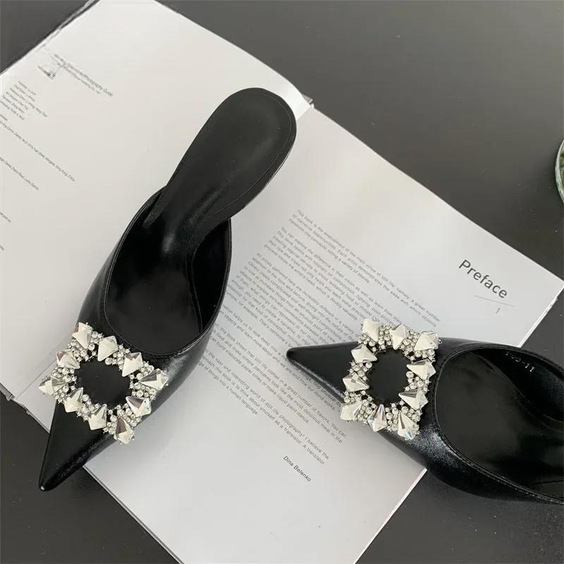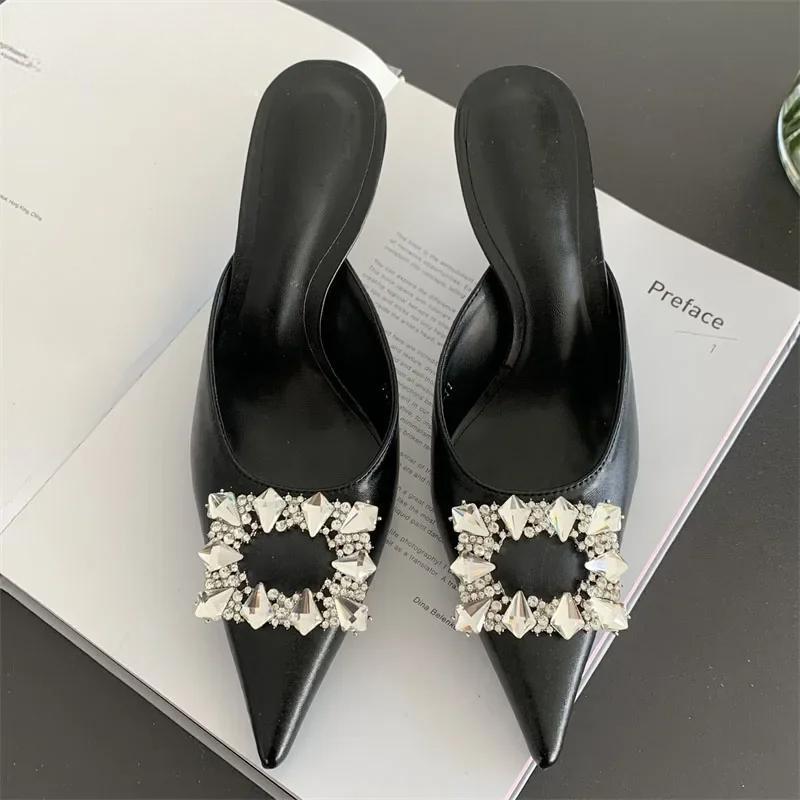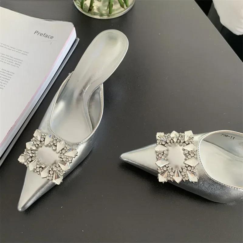 CRYSTAL Buckle Slingbacks Women Pumps Slipper Street Style Gold Silver Pointed Toe Party Mules Female Shoes
