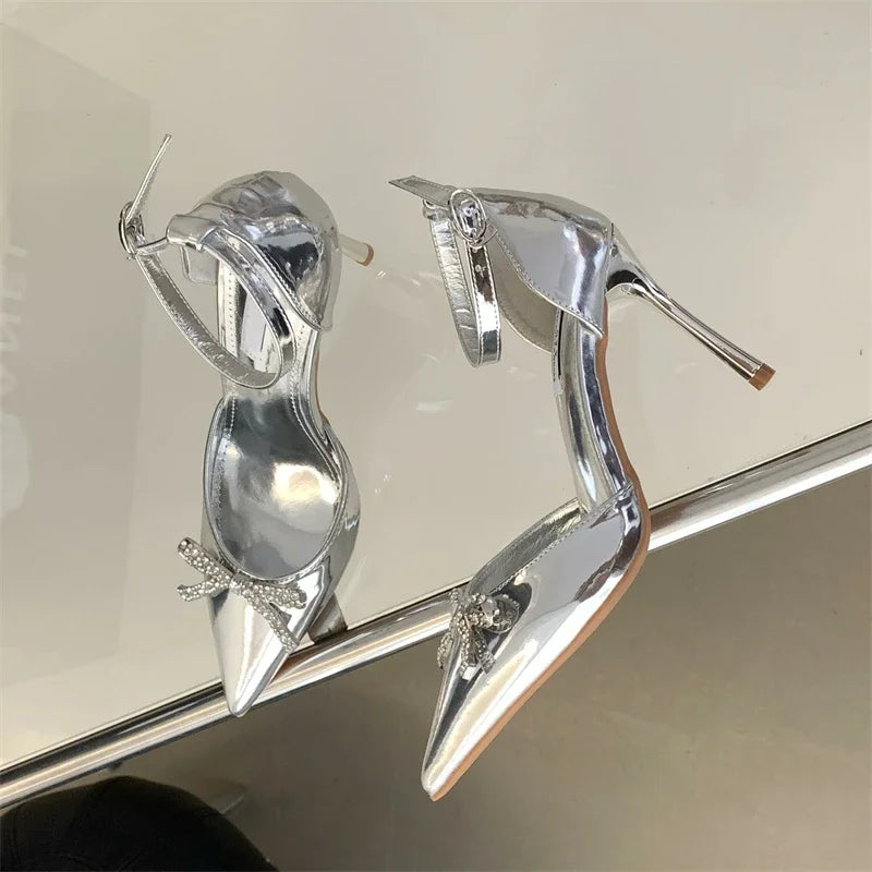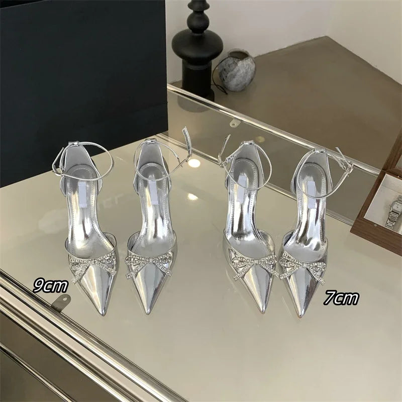 CRYSTAL Butterfly-knot Pointed Toe Buckle Strap Women Pumps Sandals Thin High Heels