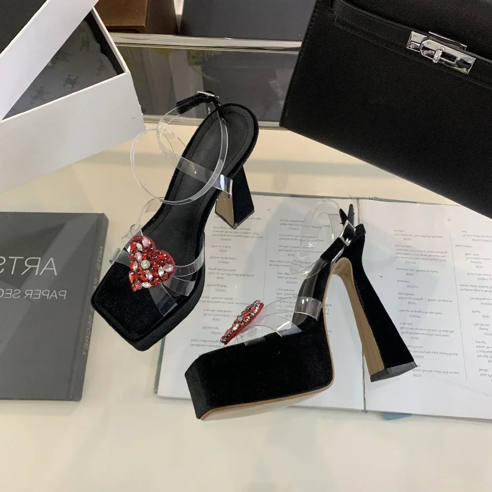 Design Style Square High Heels Platform Women Sandals Fashion Crystal PVC Tansparent Buckle Strap Party Ladies Shoes