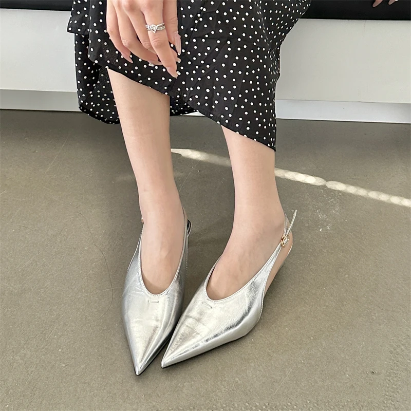 Designer Pointed Toe Buckle Strap Pumps Women Sexy Thin Low Heels Elegant Banquet Dress Mule Ladies Shoes