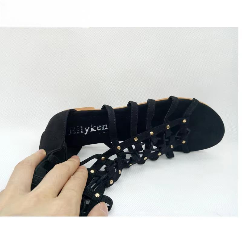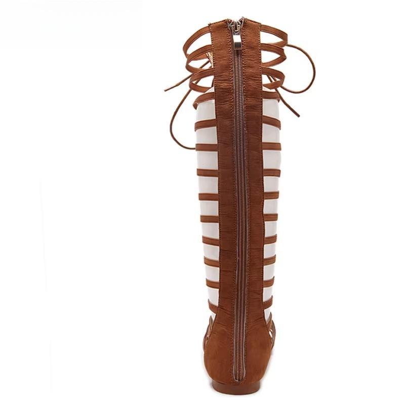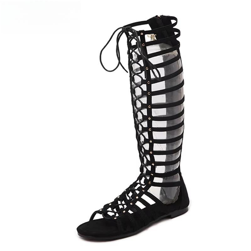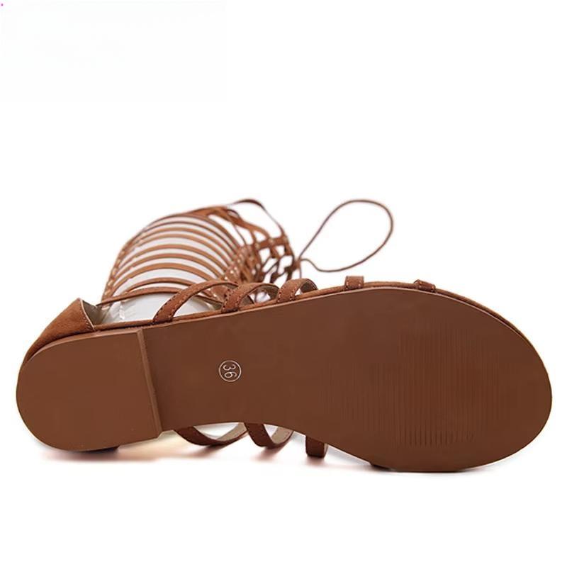 Designer Women Sandals Strappy Open toe Knee High Summer Gladiator Flat Sandals Roman Bandage Casual Boots Shoes