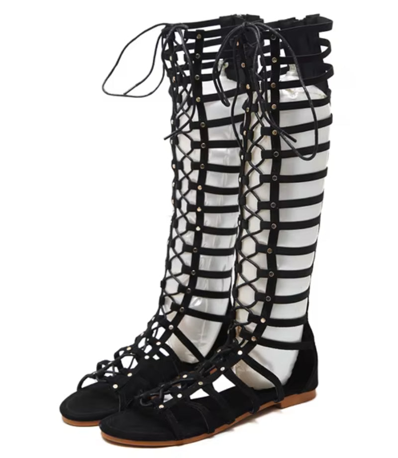 Designer Women Sandals Strappy Open toe Knee High Summer Gladiator Flat Sandals