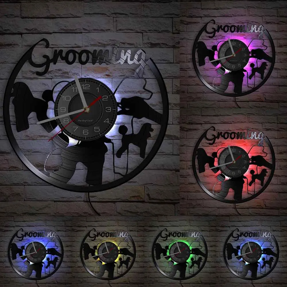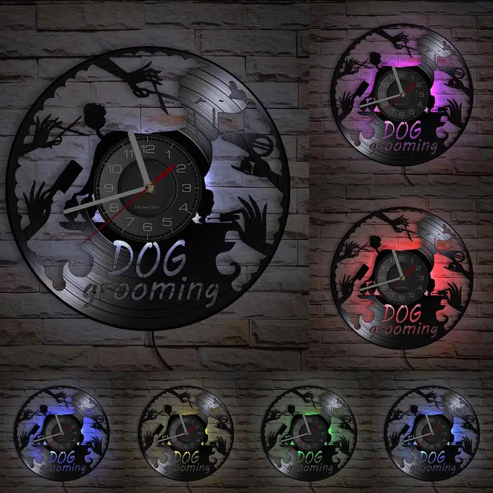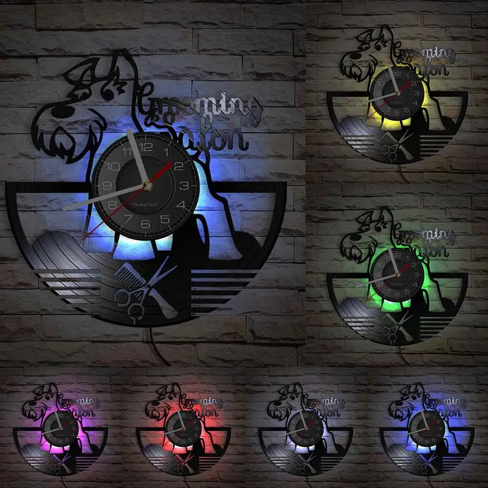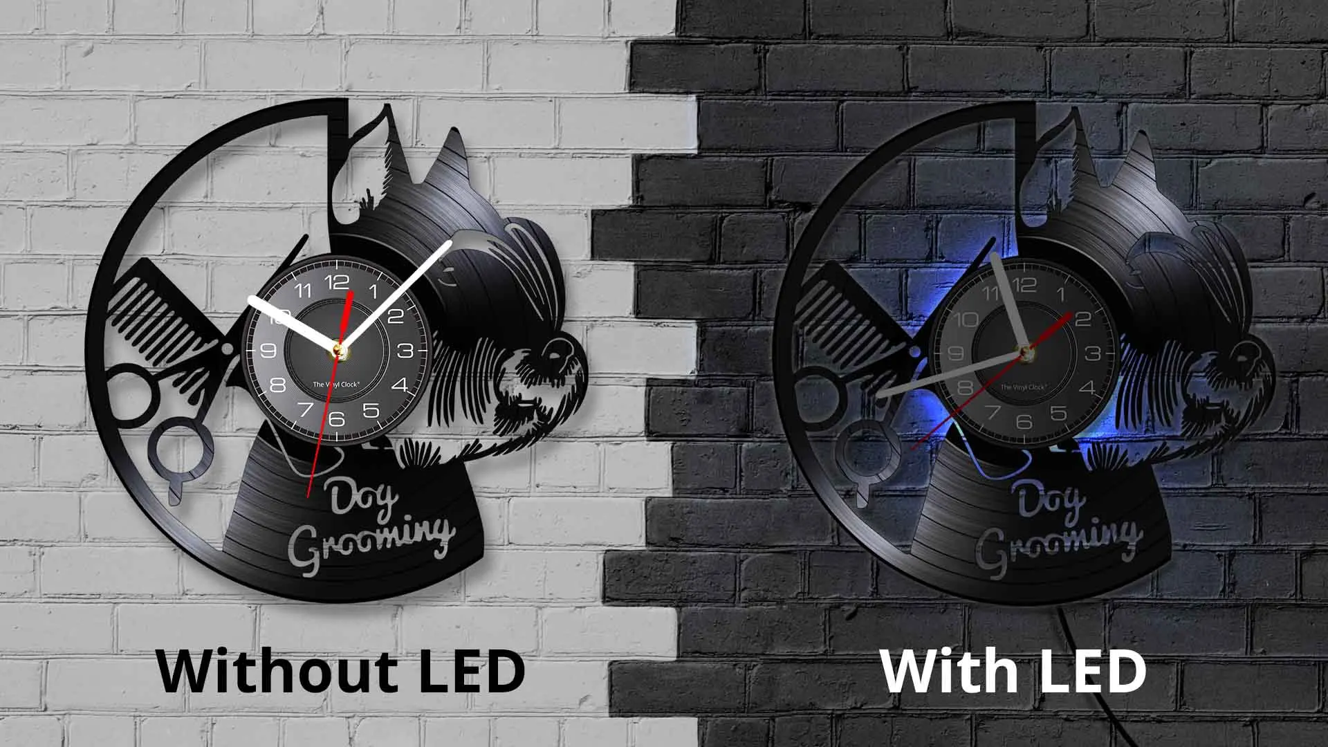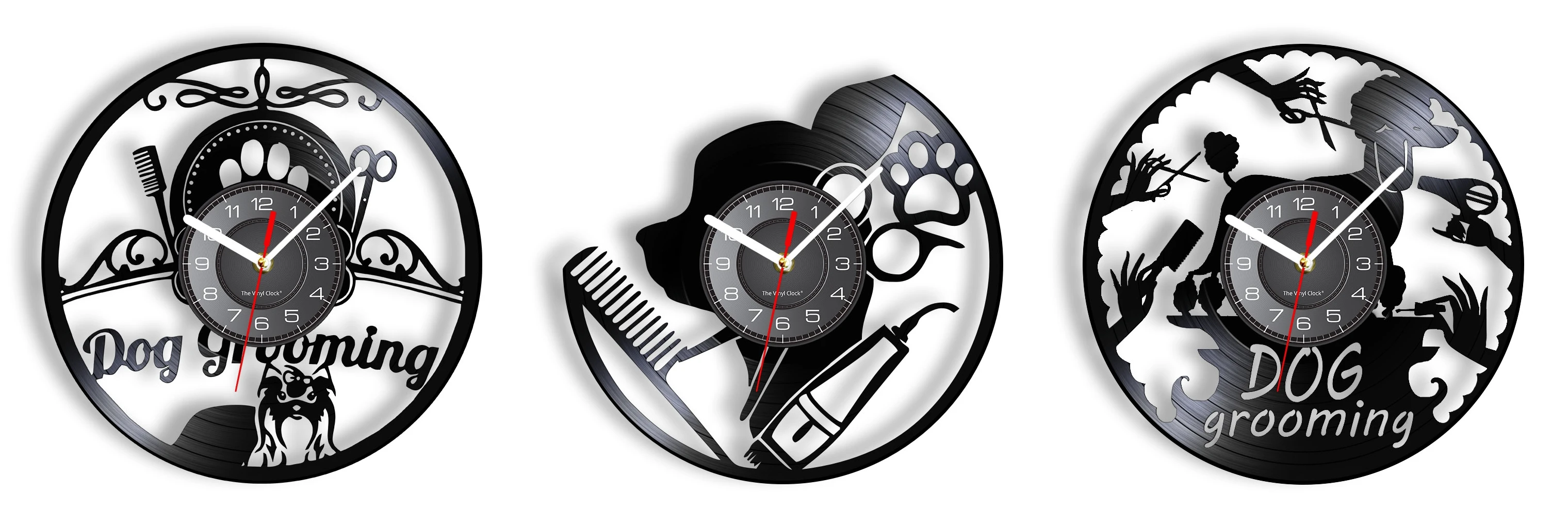 Dog Grooming Salon Vinyl Record Wall Clock Home Art Decor Scottish Terrier Puppy Dog Craft Wall Watch for Pet Shop Groomer Gift