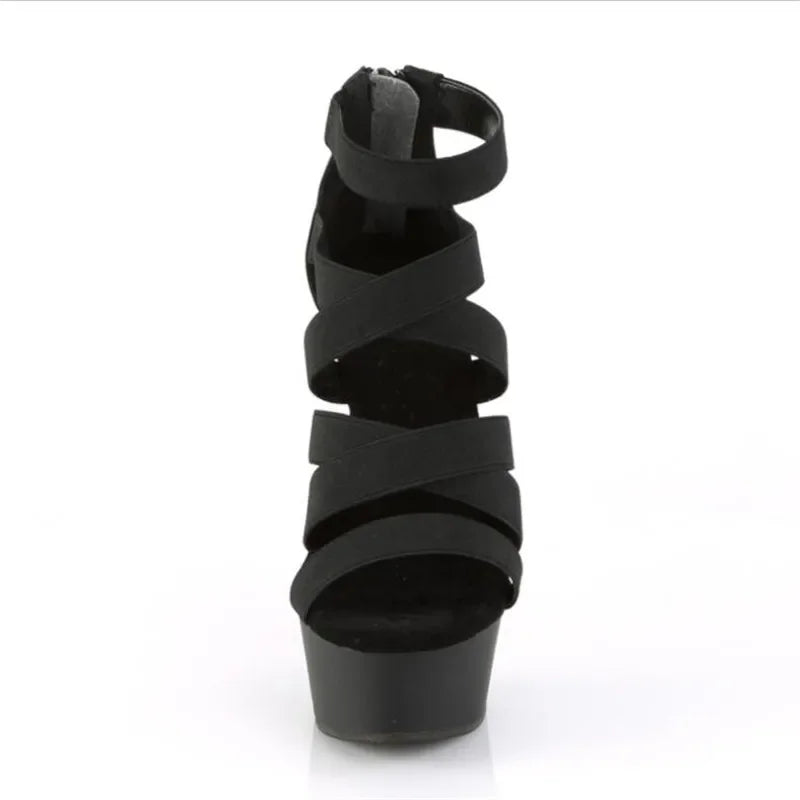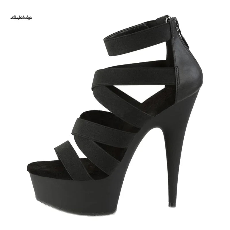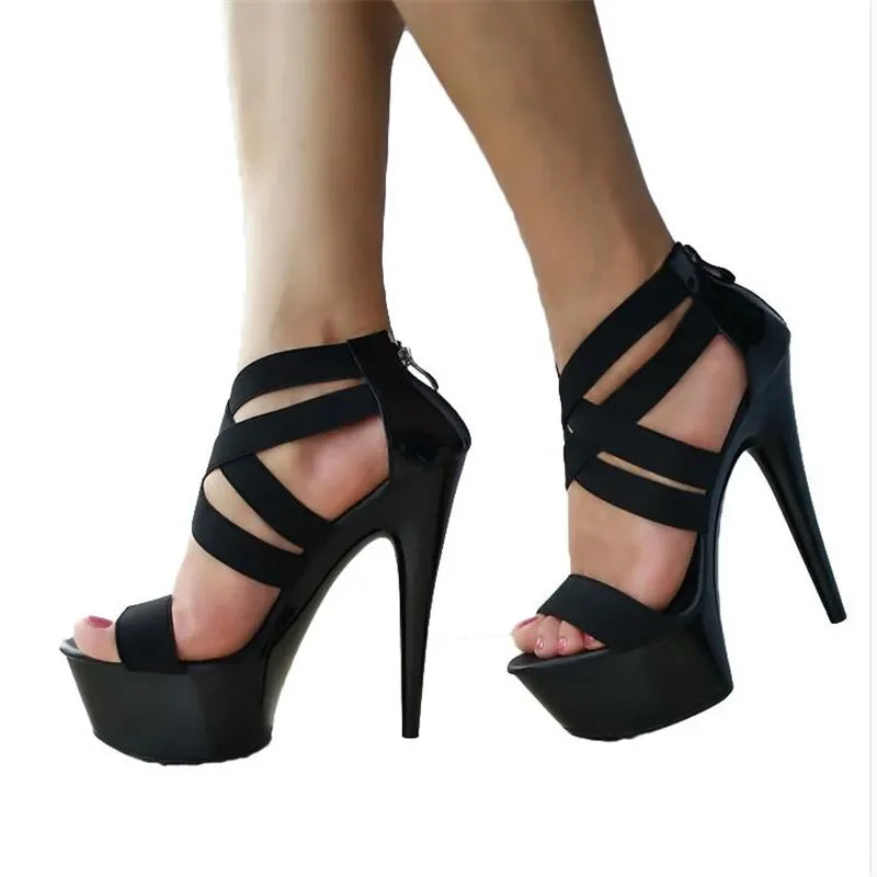 Elegant Exegang Office Lady Sandals Cross Strap Sandalia Nightclub Womam Sandals 15cm