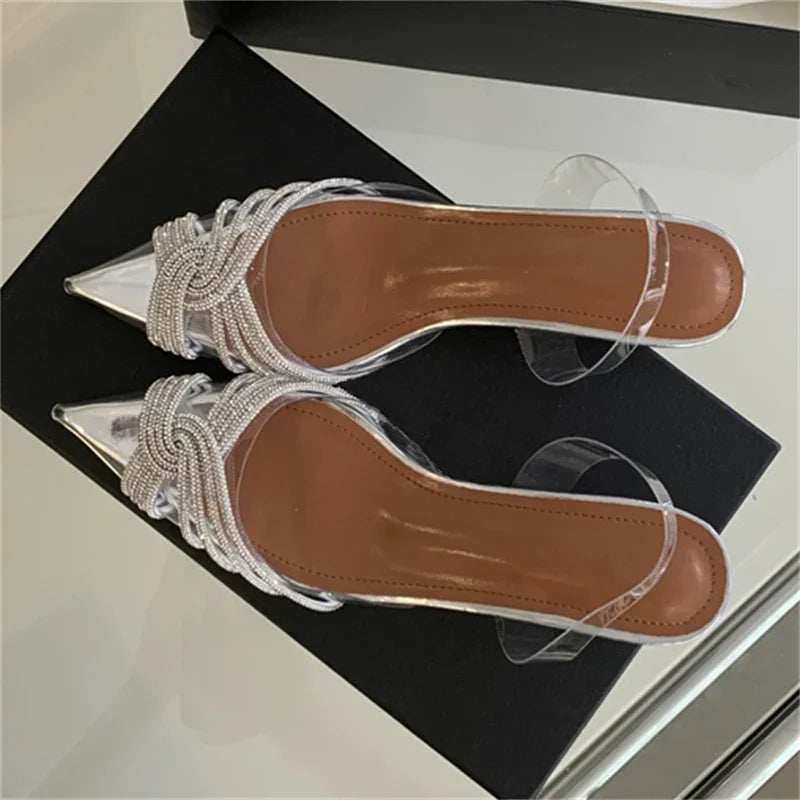 Elegant PVC Transparent Crystal Low Heels Pointed Toe Women Pumps Street Style Slingbacks Banquet Party Shoes