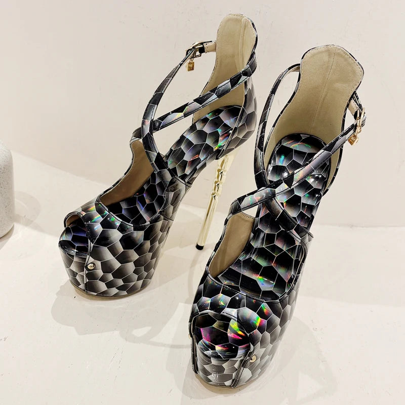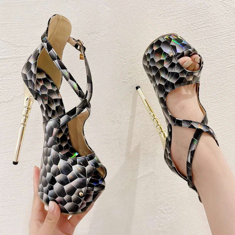 Extreme Peep Toe Hollow Out Platform Women Sandals Super Stiletto Heels Nightclub Prom Shoes Zapatos Mujer