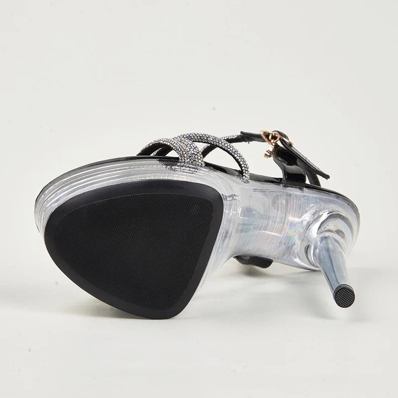 Fashion Crystal Transparent Platform Sandals Women Open Toe Rhinestone High Heels
