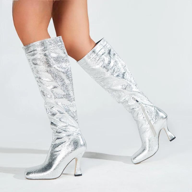 Fashion Design Knee-High Women Boots Fashon Square toe High Heels
