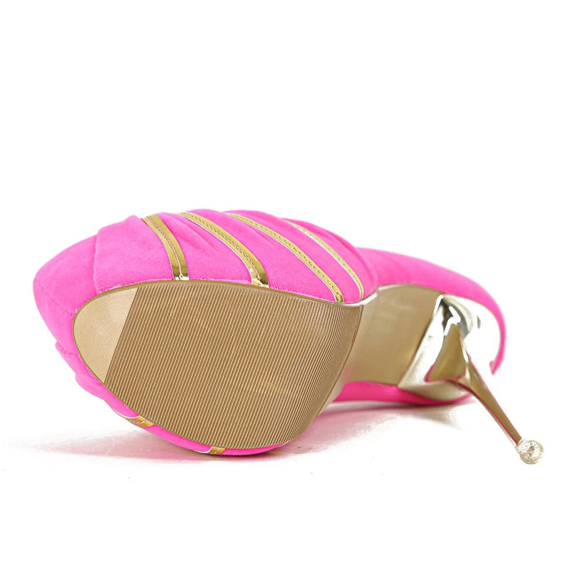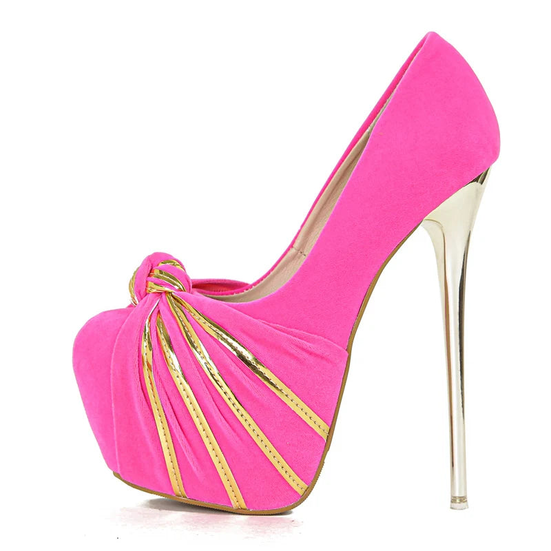Fashion Design Metal Pleated Round Toe Slingback High Heels Wedding Banquet Shoes Women Platform Pumps Stilettos Mujer
